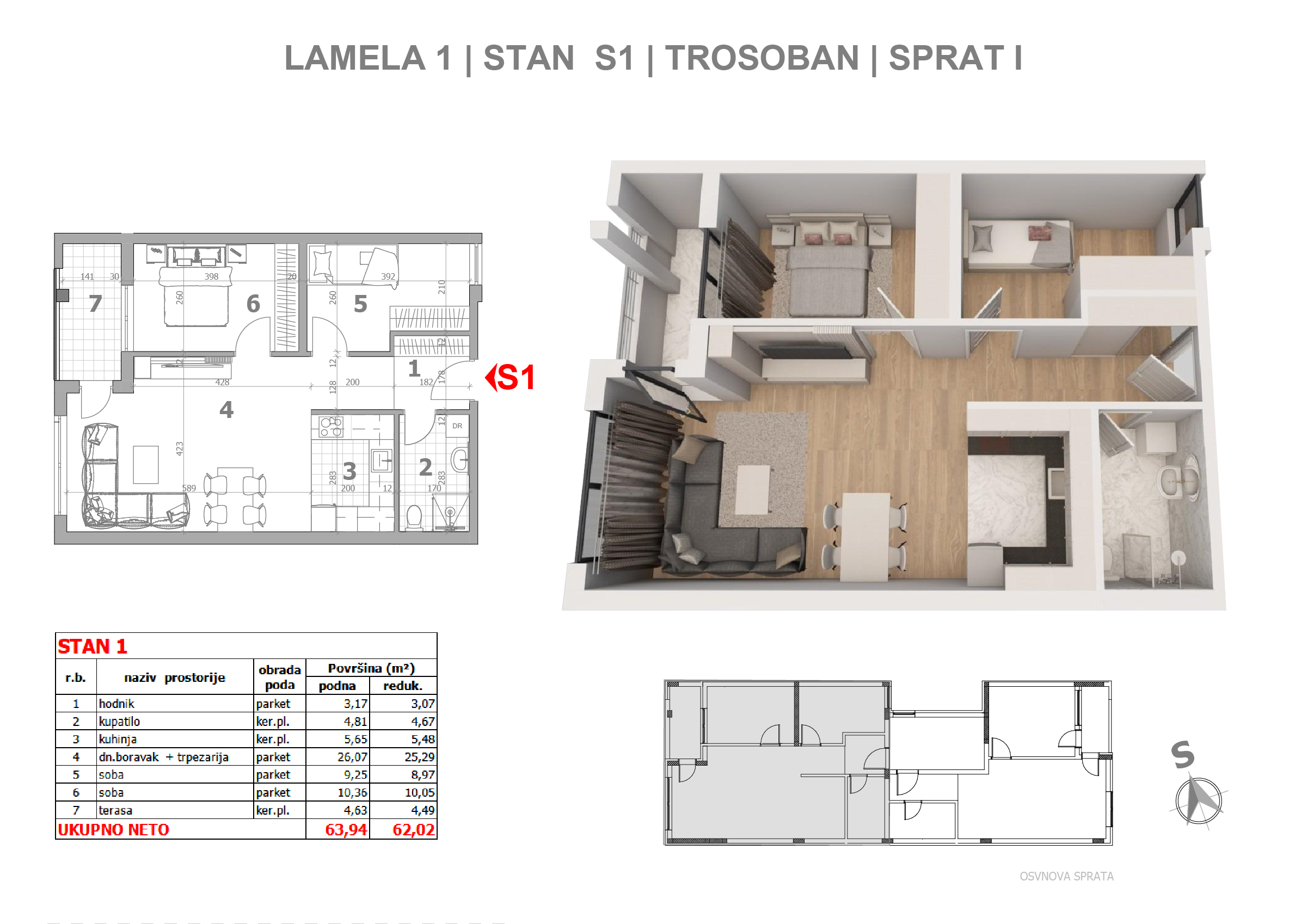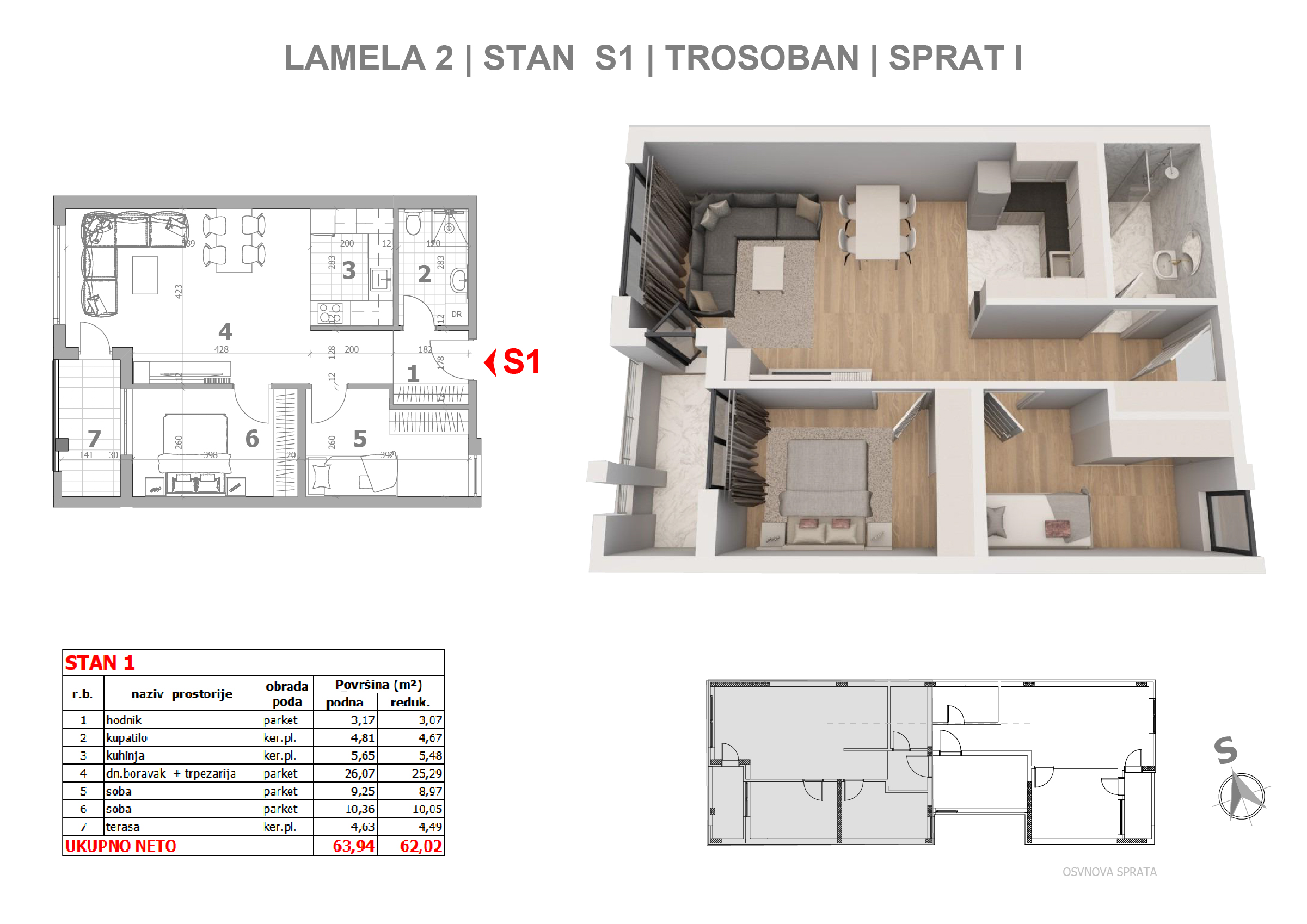 | Lamela I - S1 | 1 | 64 m² | 2 | Available | Apartment plan | |