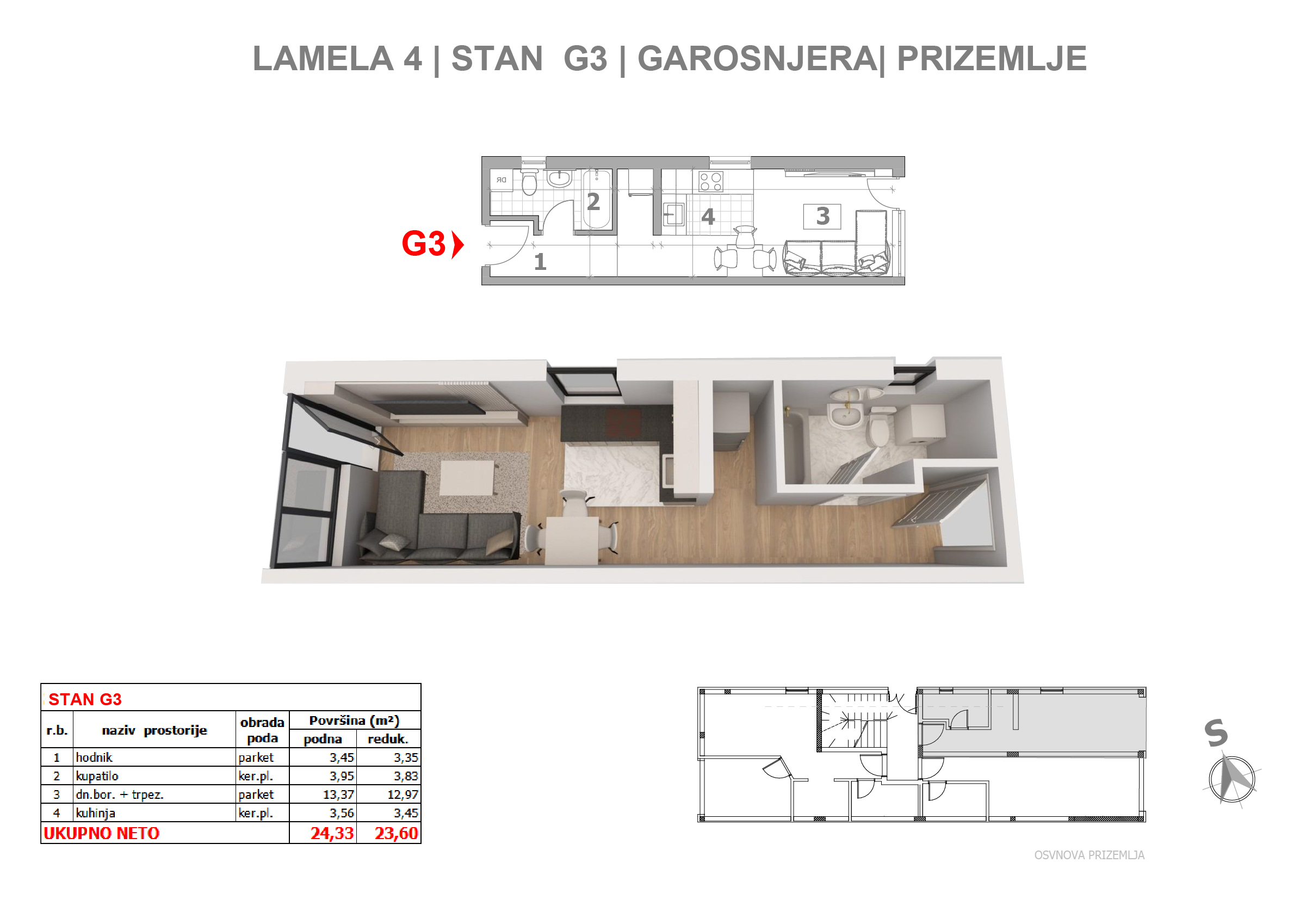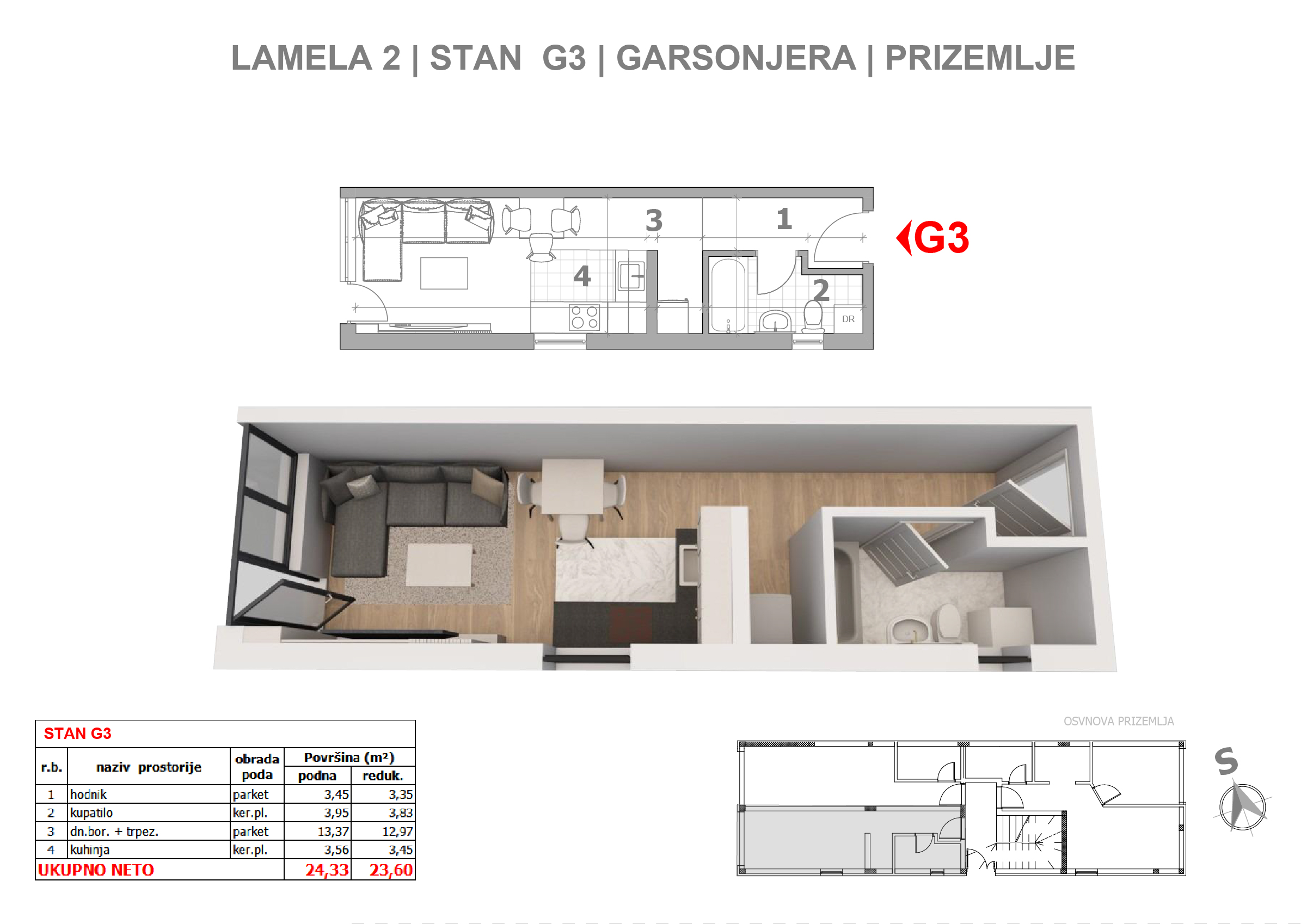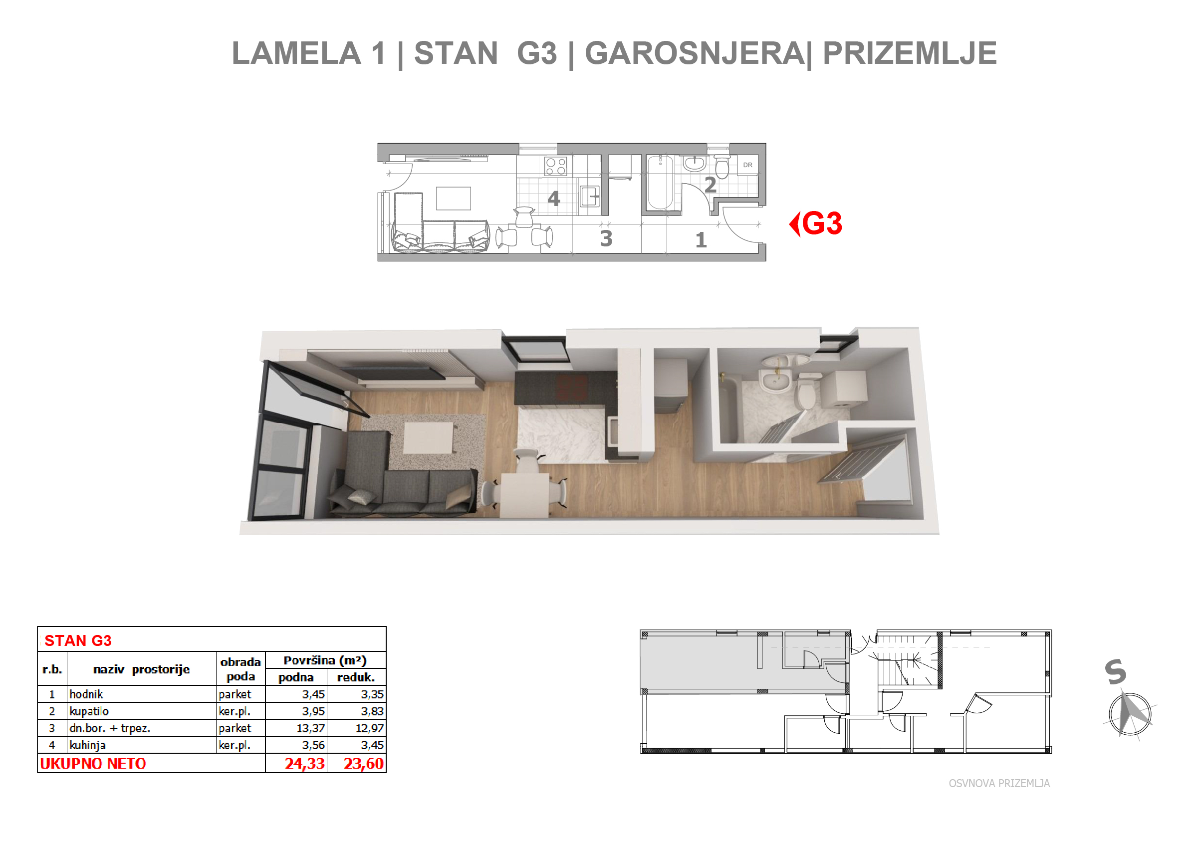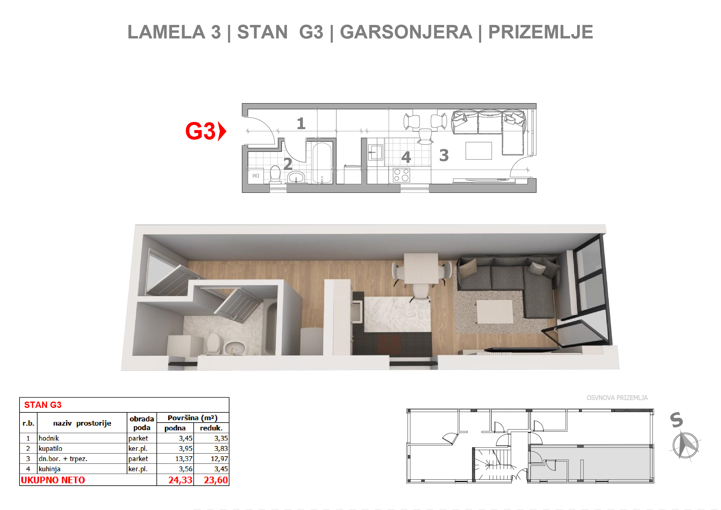 | Lamela III - G3 | Ground floor | 24 m² | 0.5 | Available | Apartment plan | |