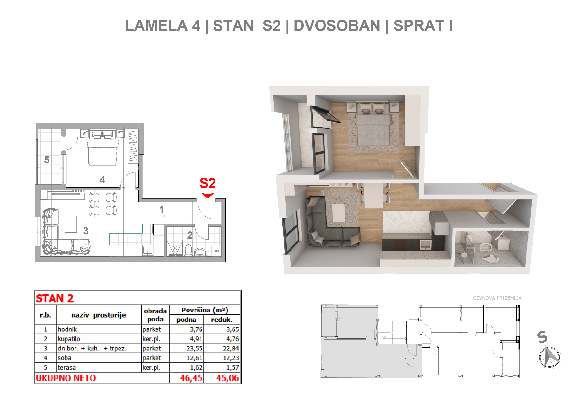 | Lamela IV - S2 | 1 | 46 m² | 1 | Available | Apartment plan | |