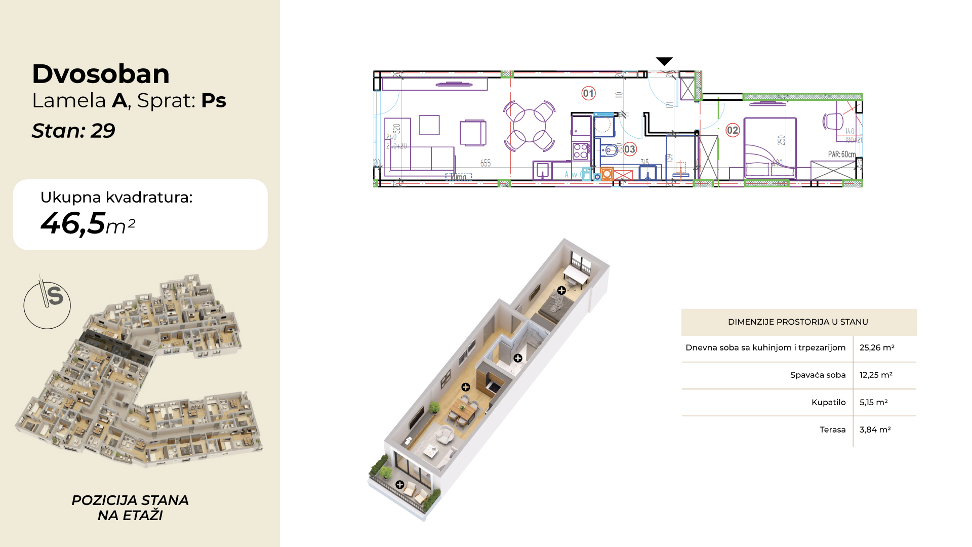 | Lamela A - Stan 29 | Povučeni sprat | 47 m² | 1 | Dostupan | Plan stana | |