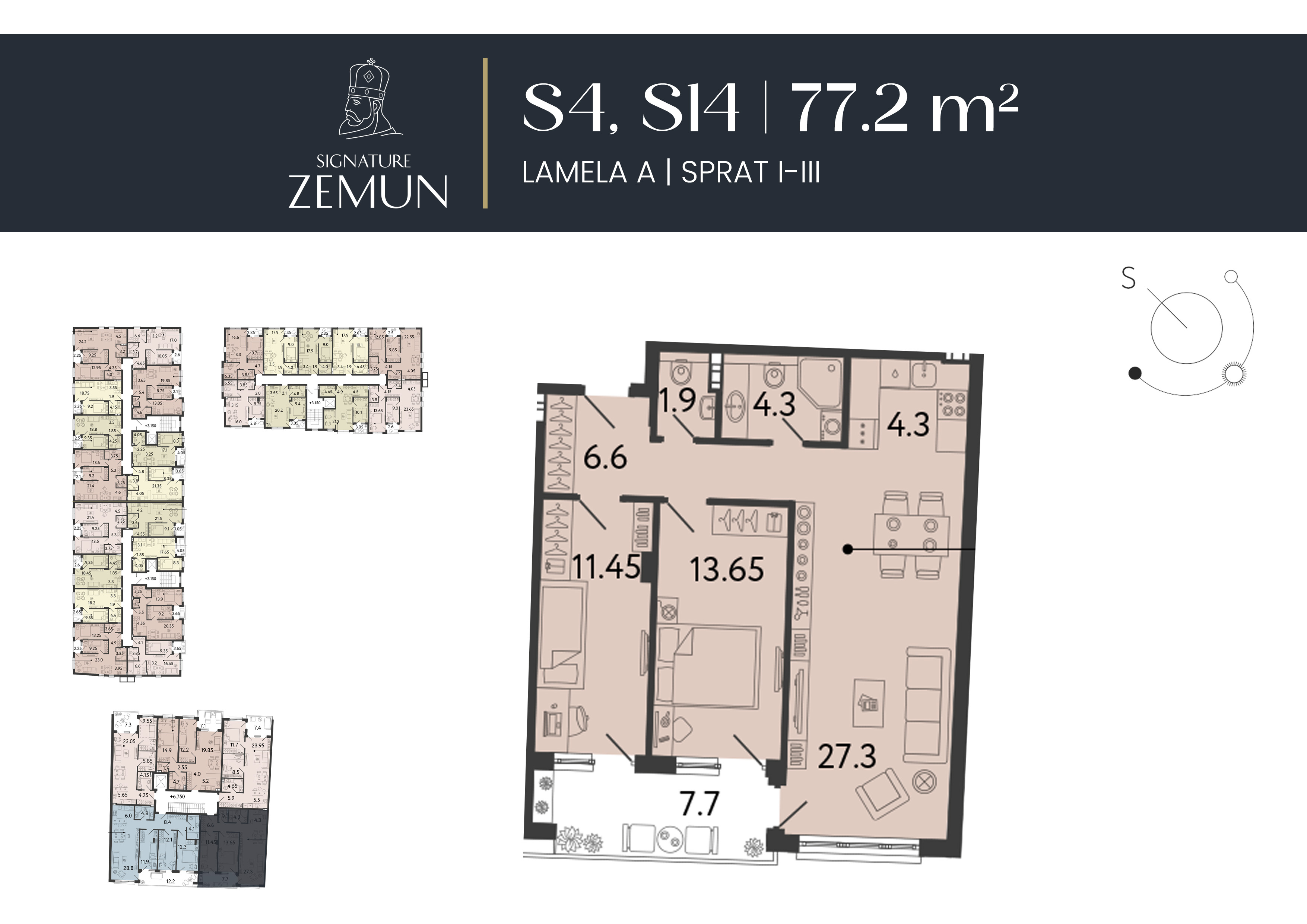 | Lamela A - S14 | 3 | 77 m² | 2 | Prodat | Plan stana | |