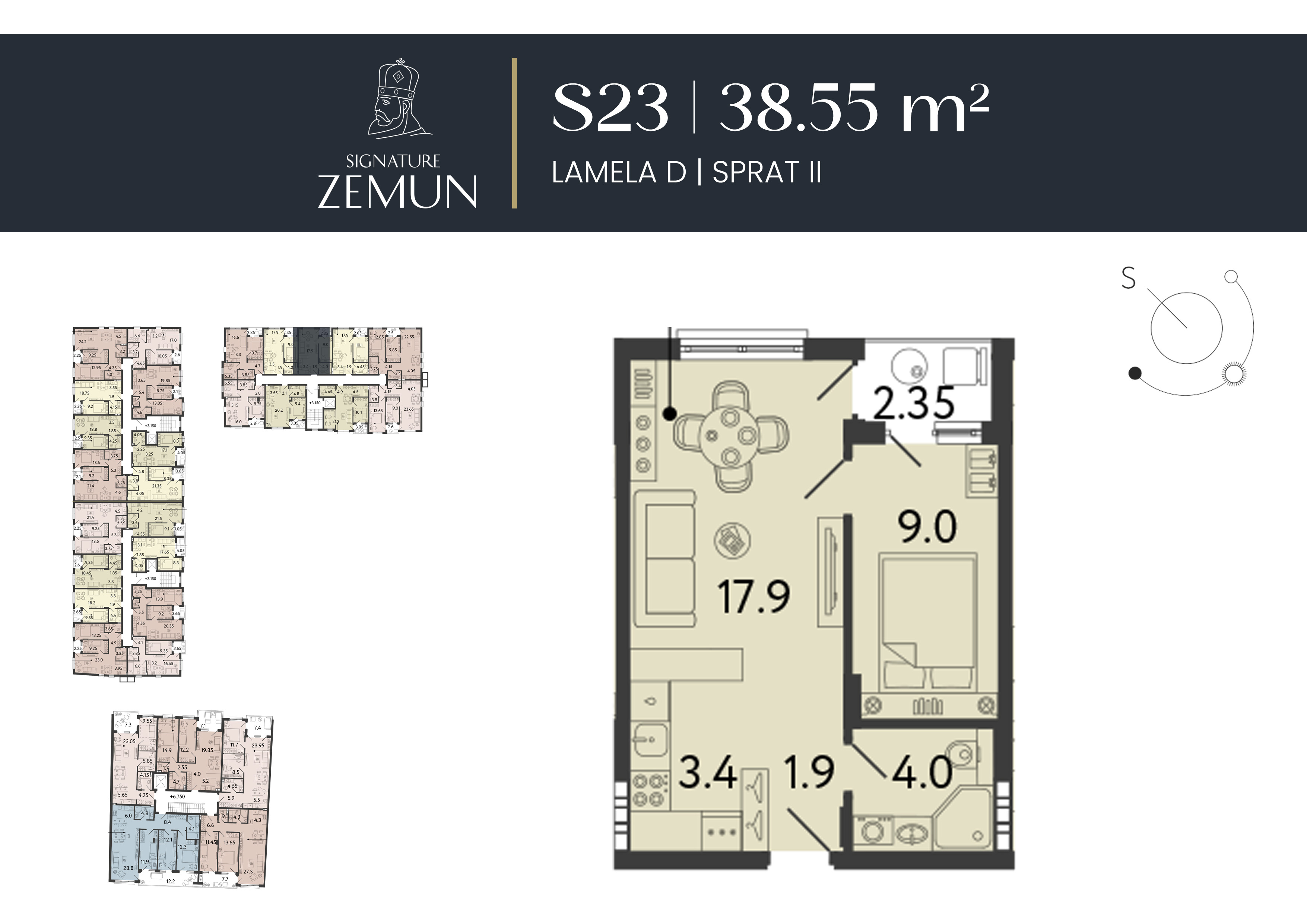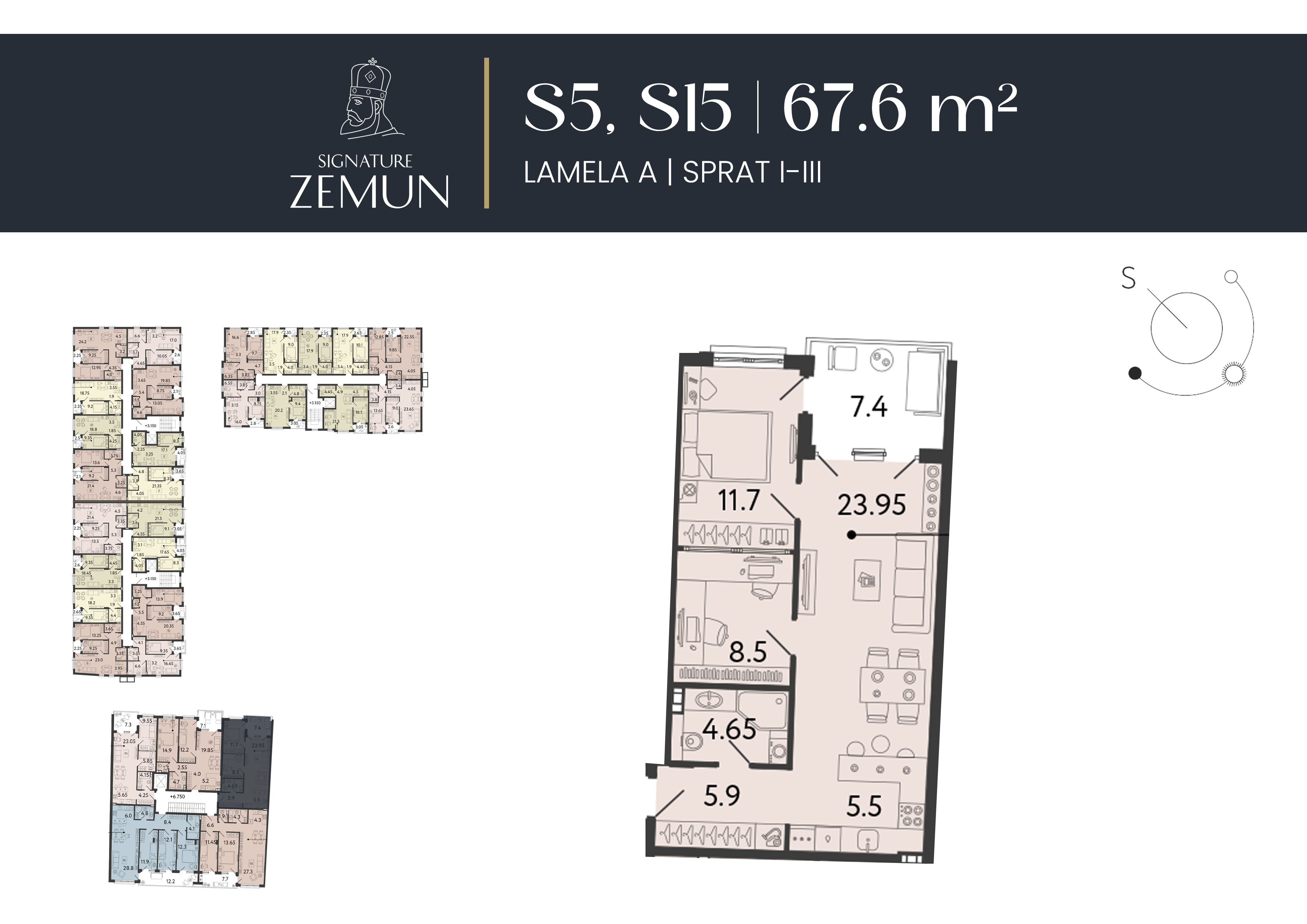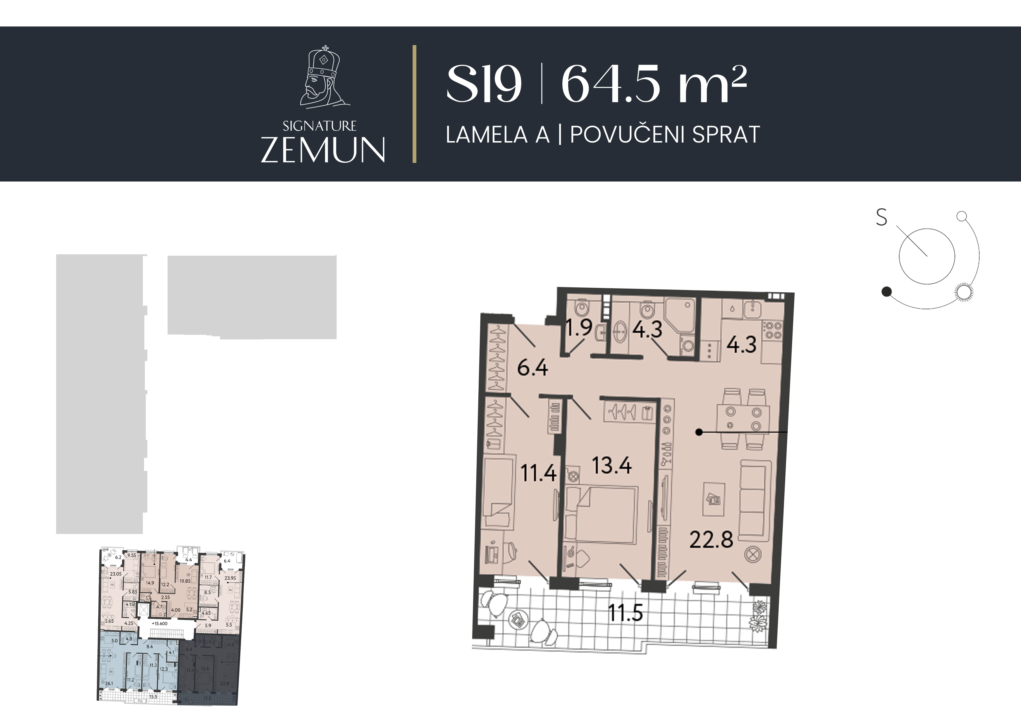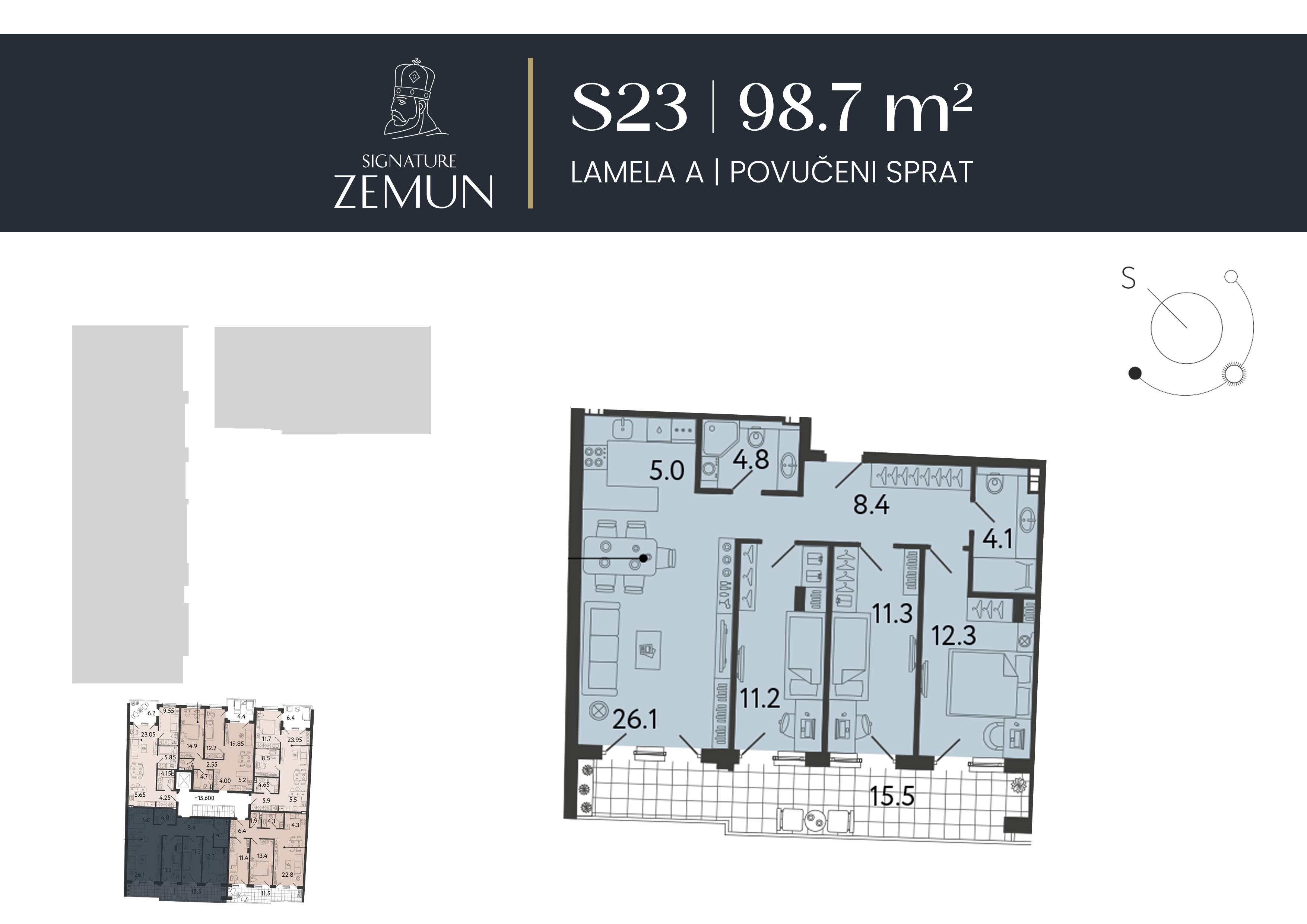 | Lamela A - S23 | Povučeni sprat | 99 m² | 3 | Rezervisan | Plan stana | |