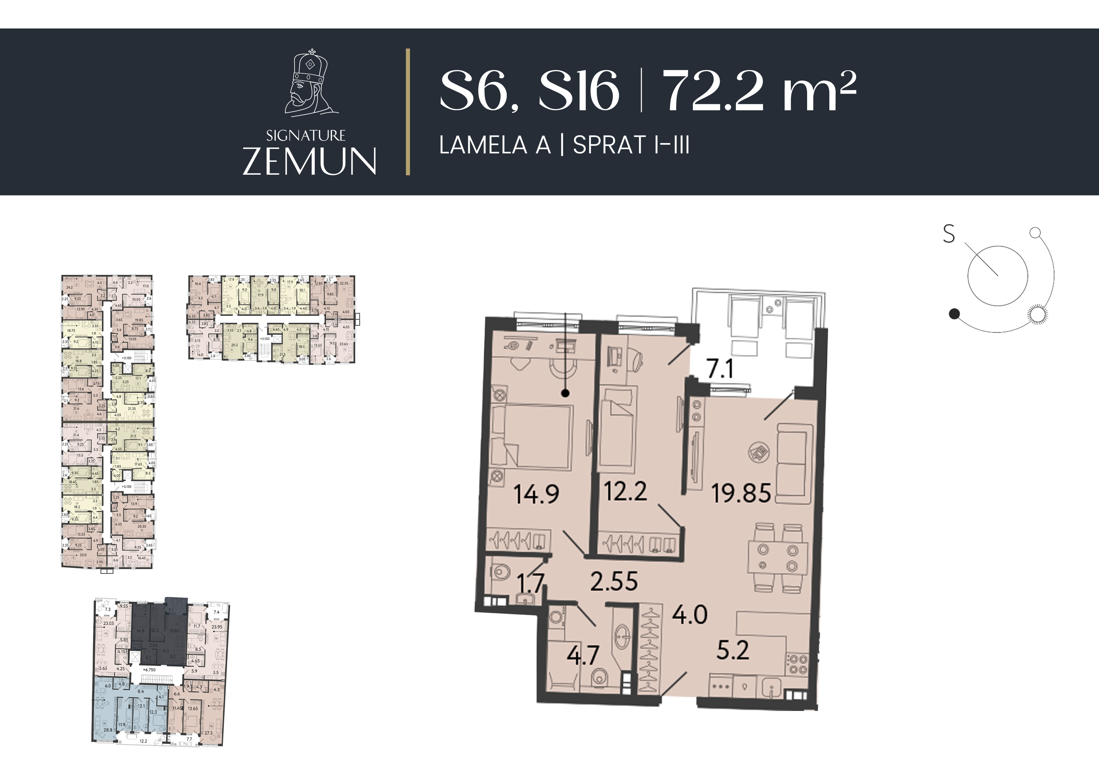 | Lamela A - S16 | 3 | 72 m² | 2 | Prodat | Plan stana | |