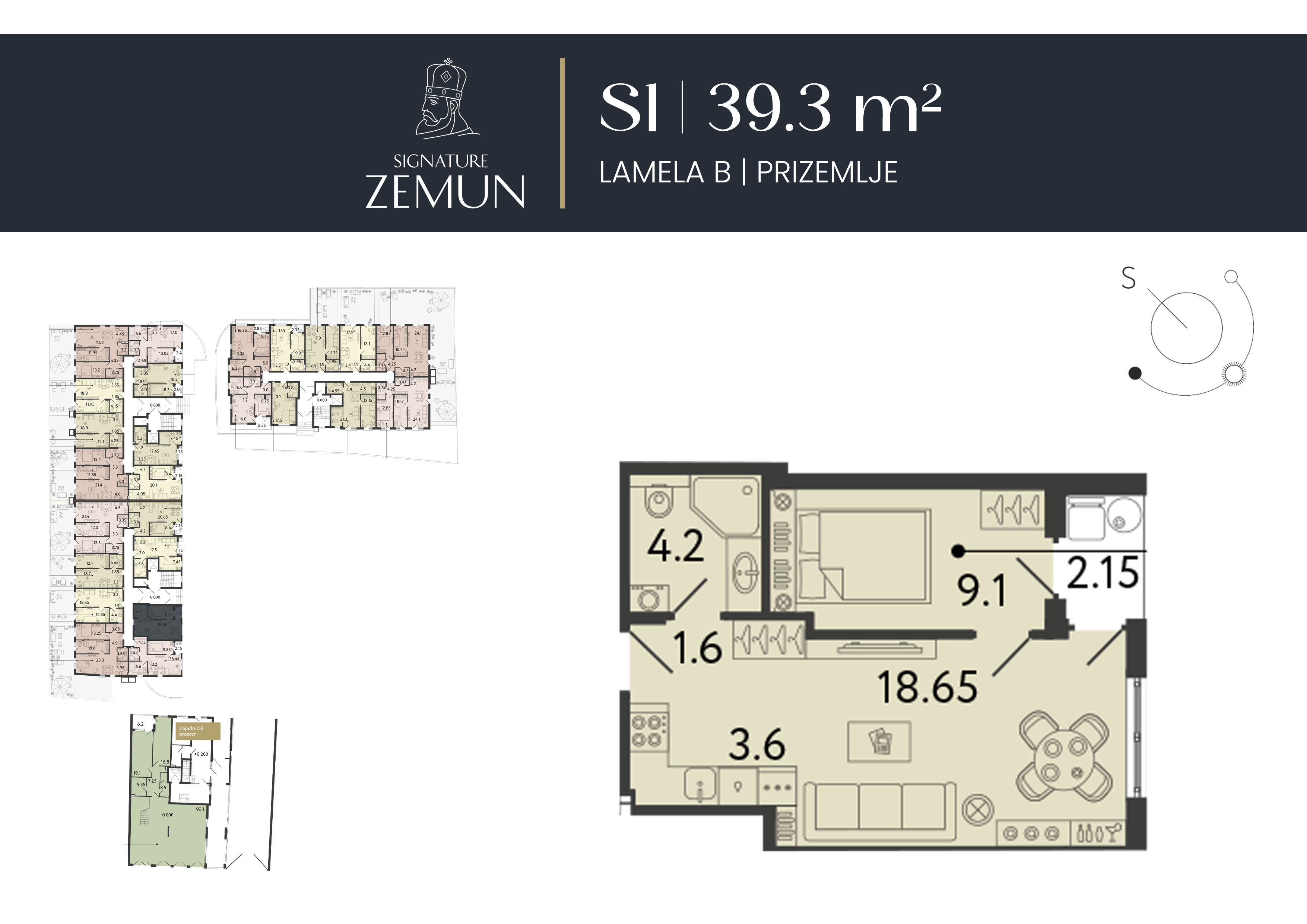 | Lamela B - S01 | Prizemlje | 39 m² | 1 | Dostupan | Plan stana | |