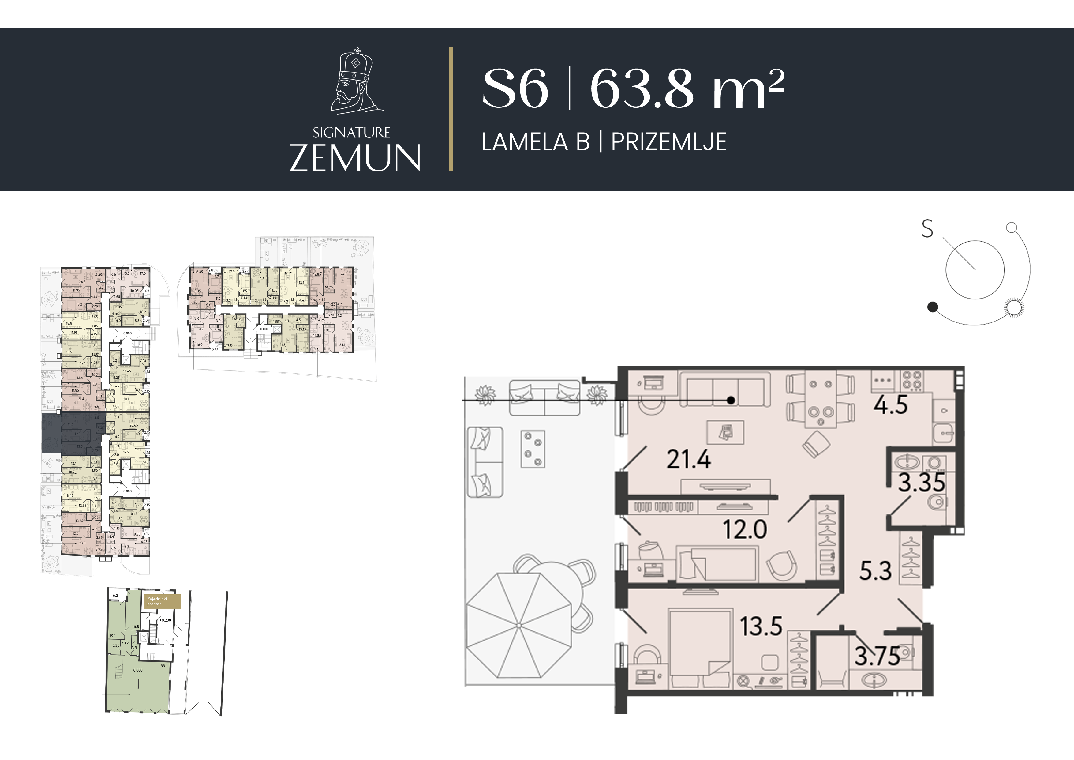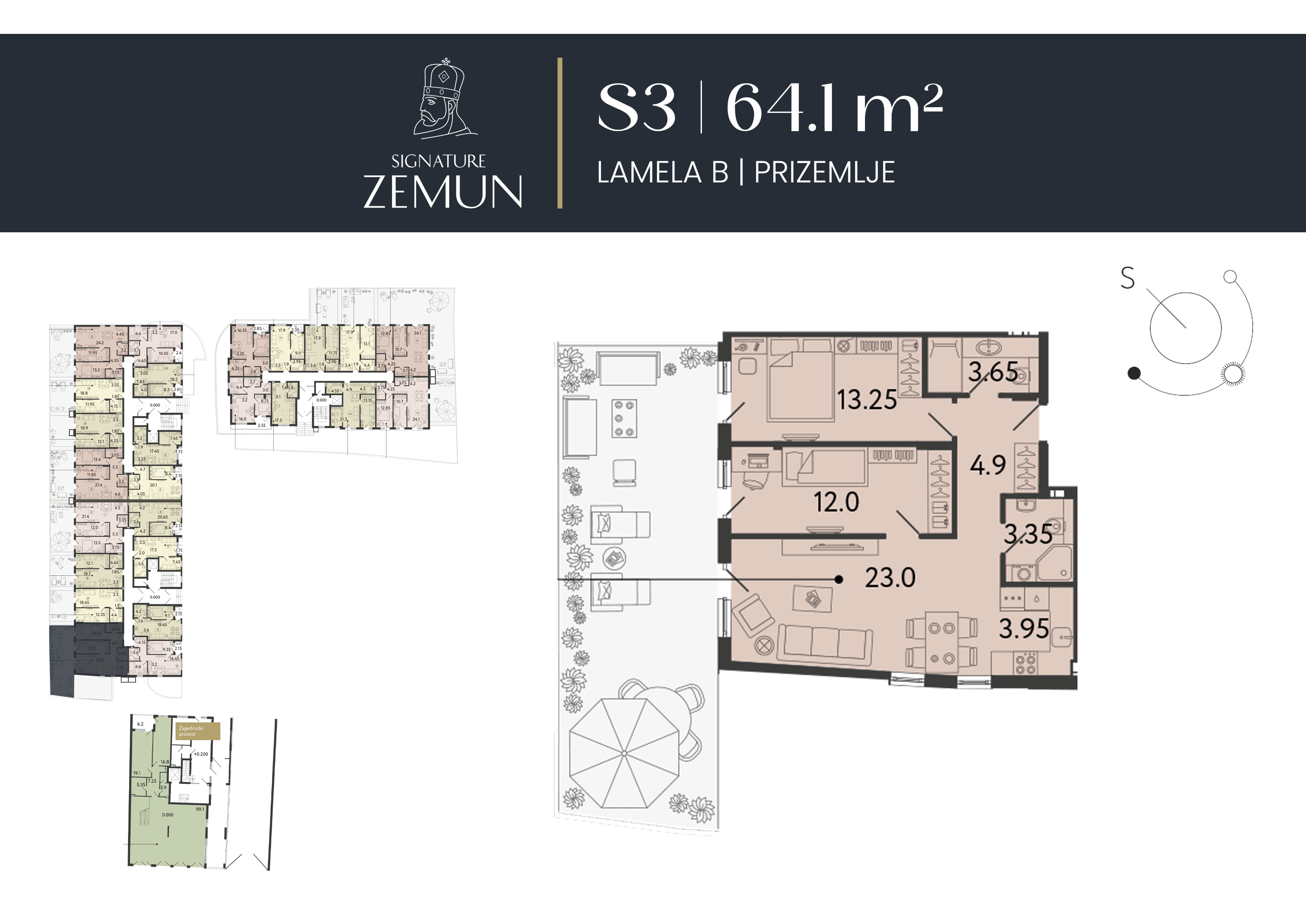 | Lamela B - S03 | Prizemlje | 64 m² | 1 | Dostupan | Plan stana | |