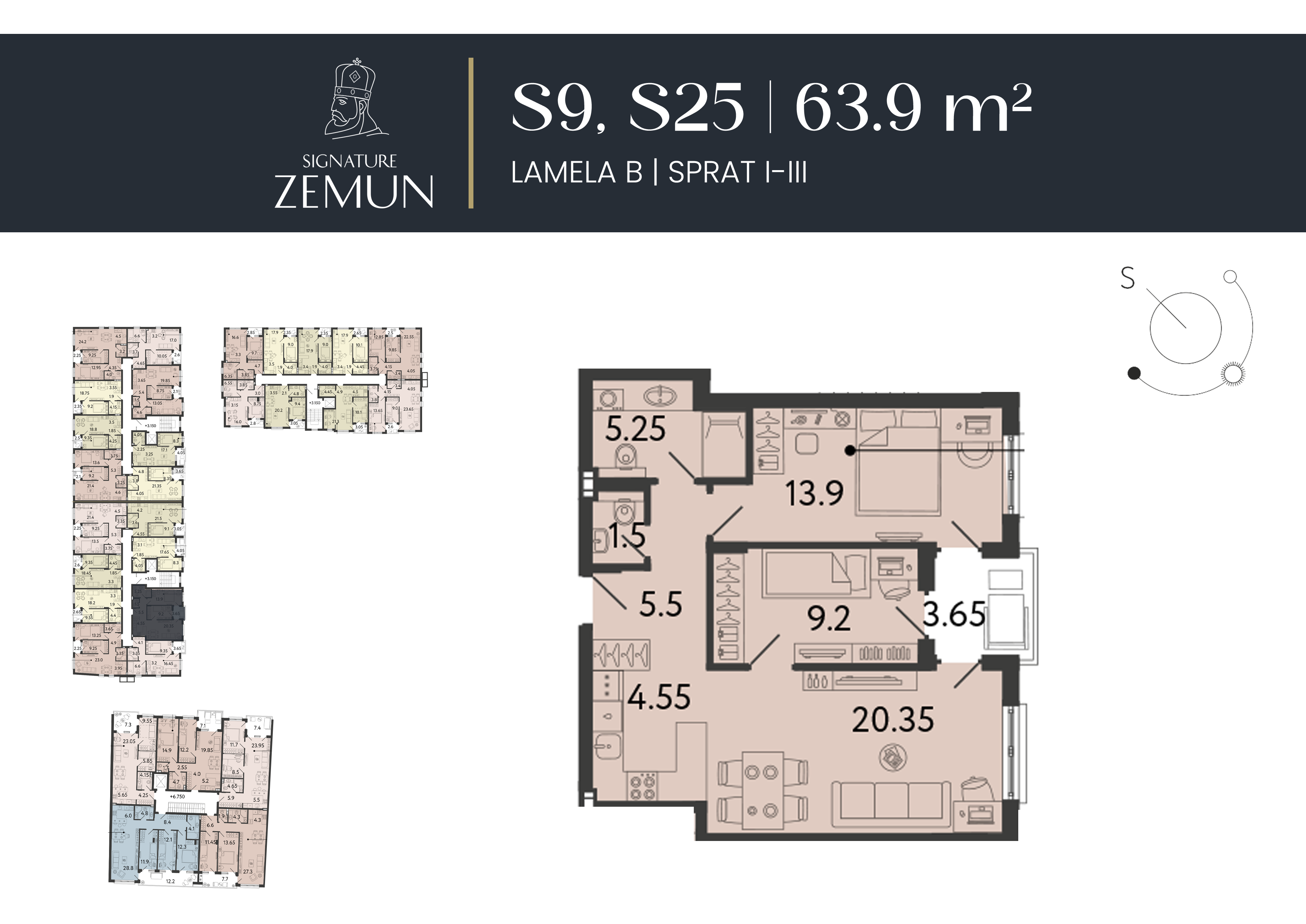 | Lamela B - S25 | 3 | 64 m² | 2 | Dostupan | Plan stana | |