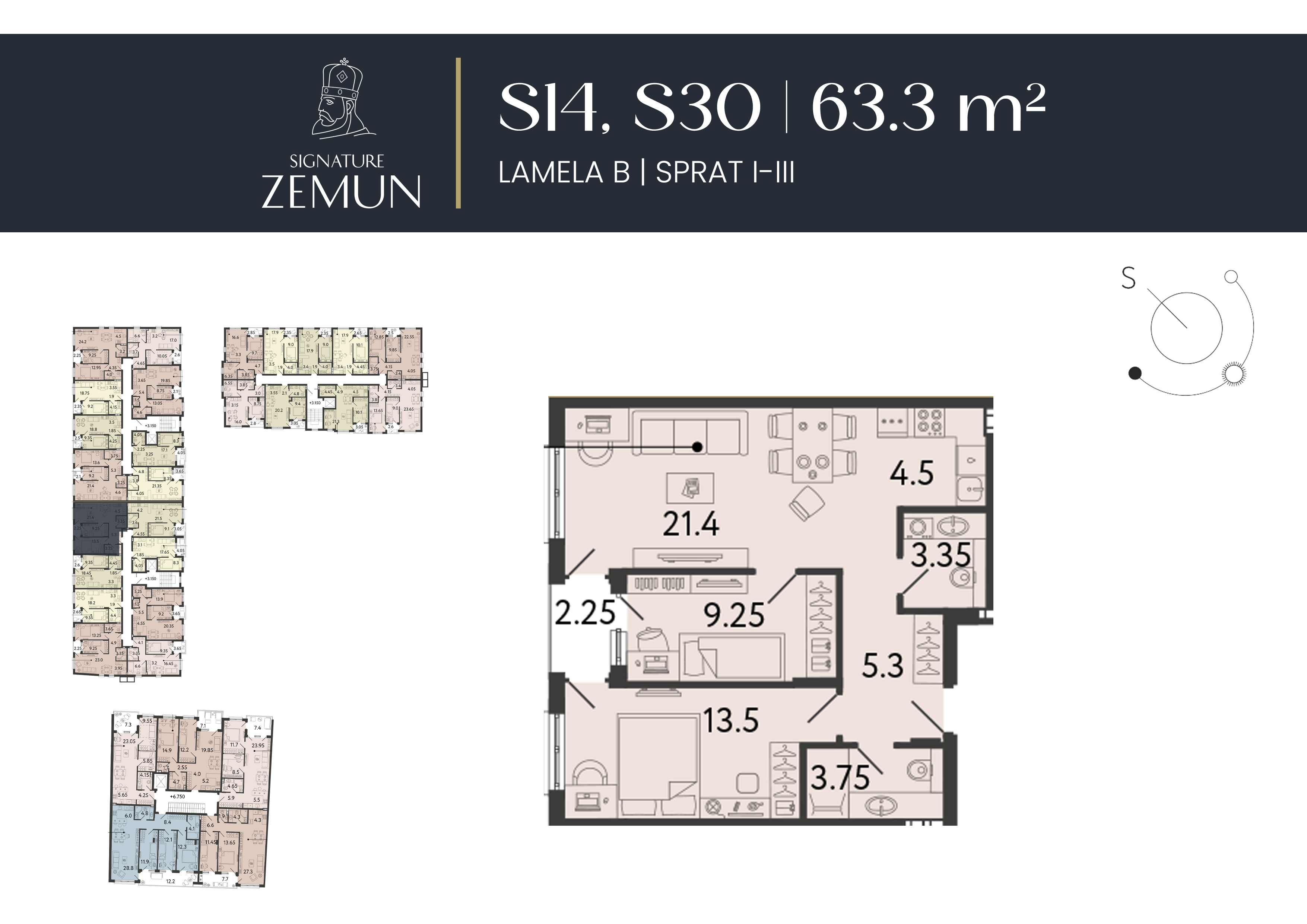 | Lamela B - S30 | 3 | 63 m² | 2 | Dostupan | Plan stana | |