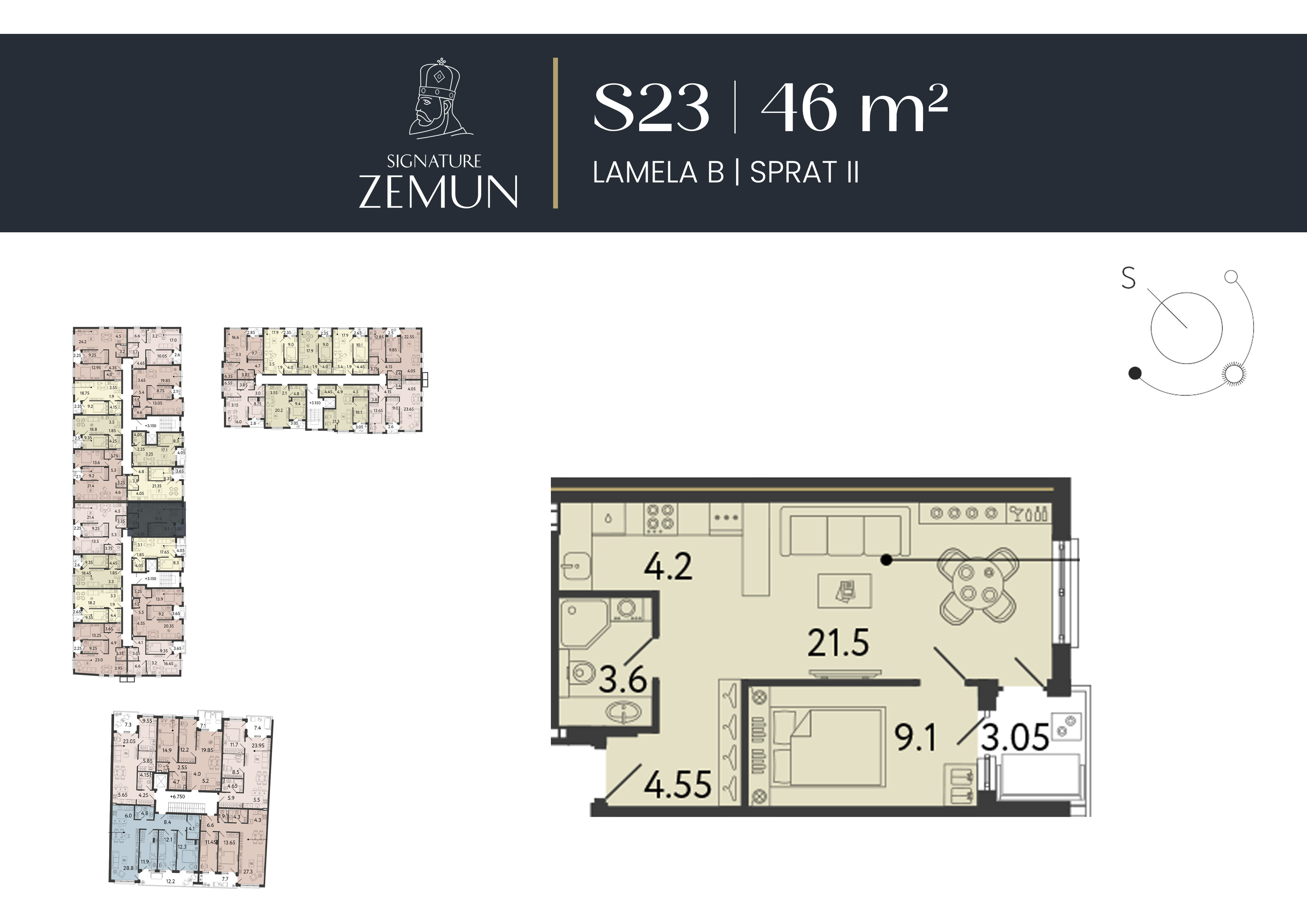 | Lamela B - S23 | 2 | 46 m² | 1 | Prodat | Plan stana | |