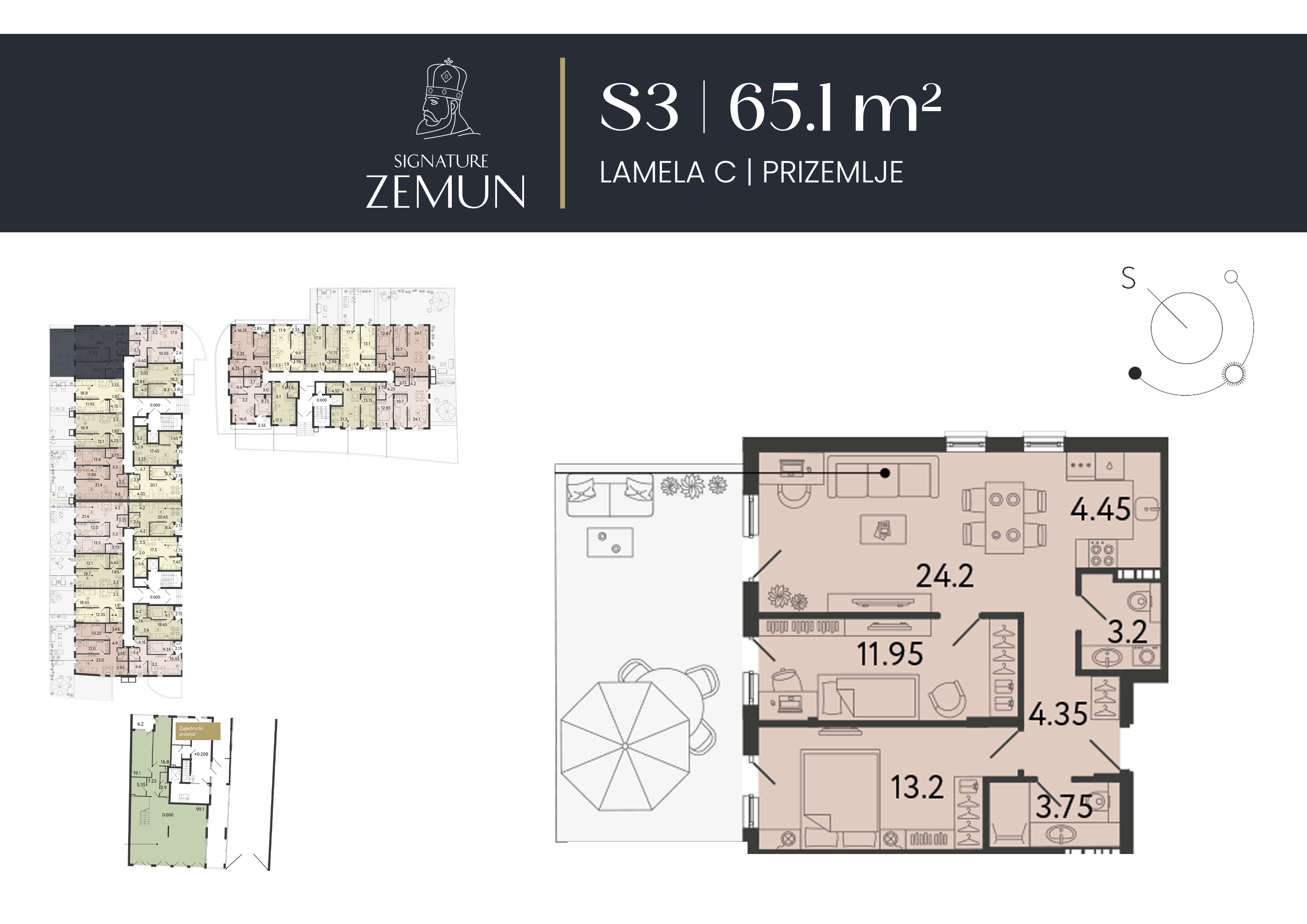 | Lamela C - S03 | Prizemlje | 65 m² | 2 | Dostupan | Plan stana | |