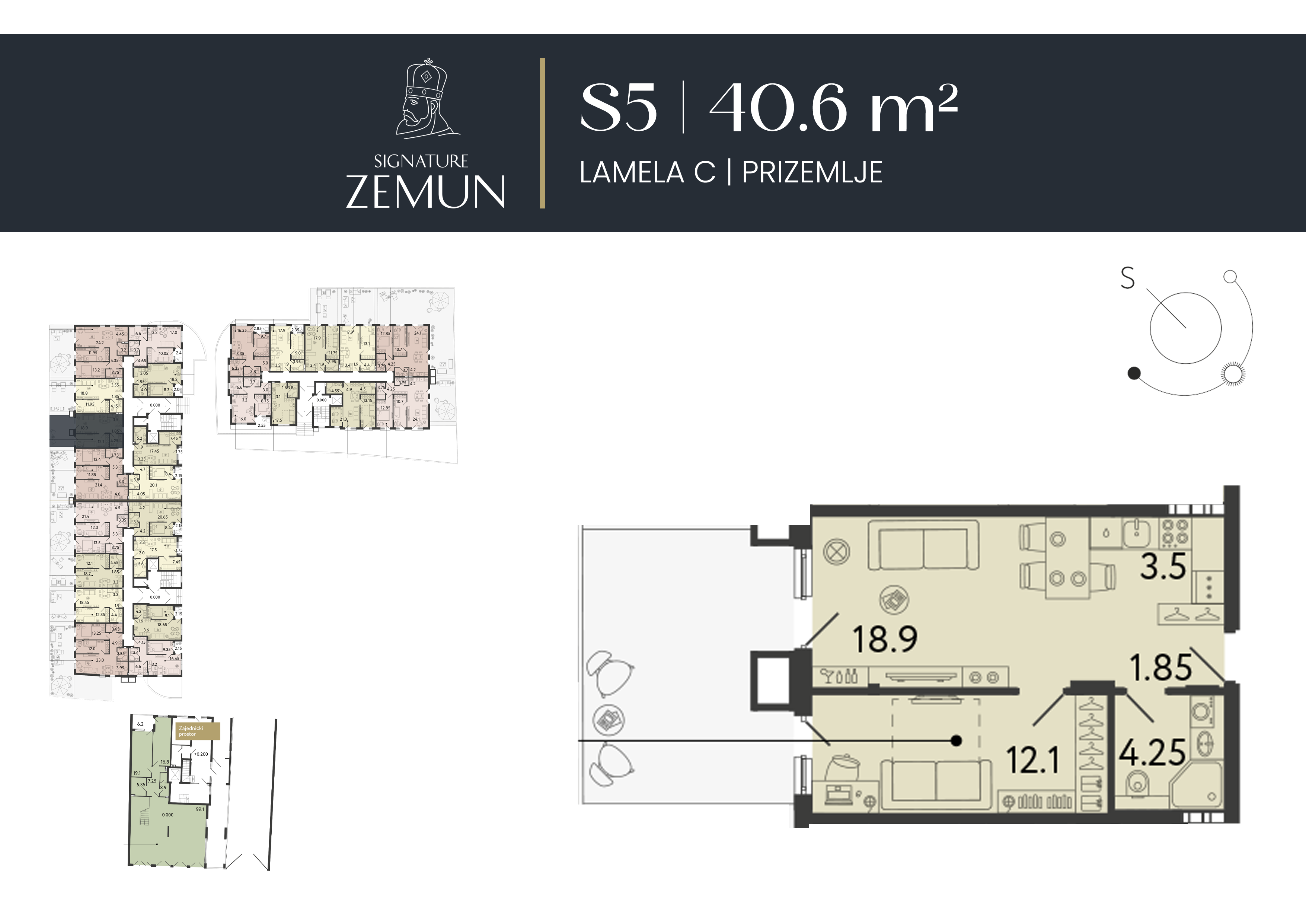 | Lamela C - S05 | Prizemlje | 41 m² | 1 | Dostupan | Plan stana | |