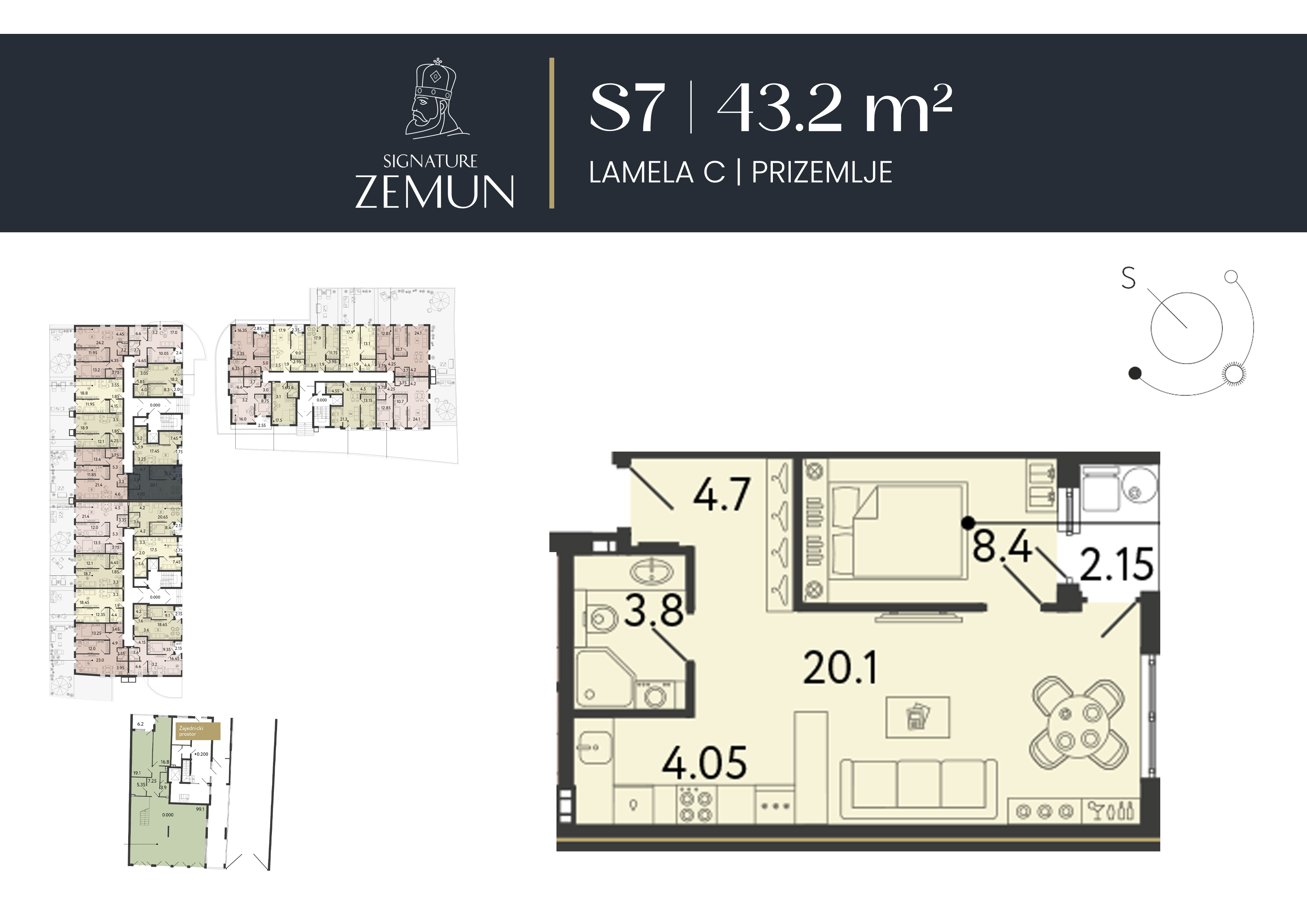 | Lamela C - S07 | Prizemlje | 43 m² | 1 | Dostupan | Plan stana | |