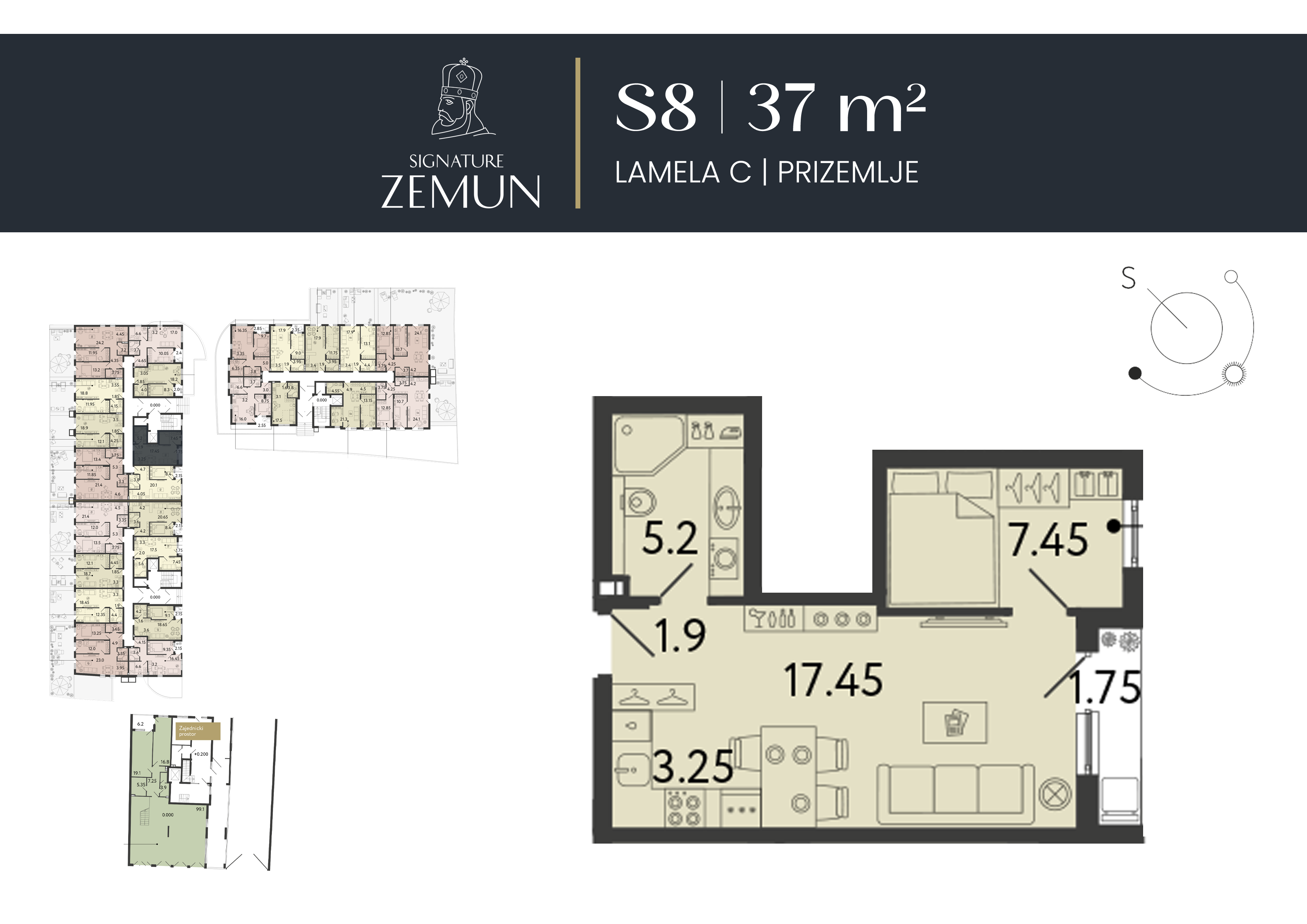 | Lamela C - S08 | Prizemlje | 37 m² | 1 | Dostupan | Plan stana | |