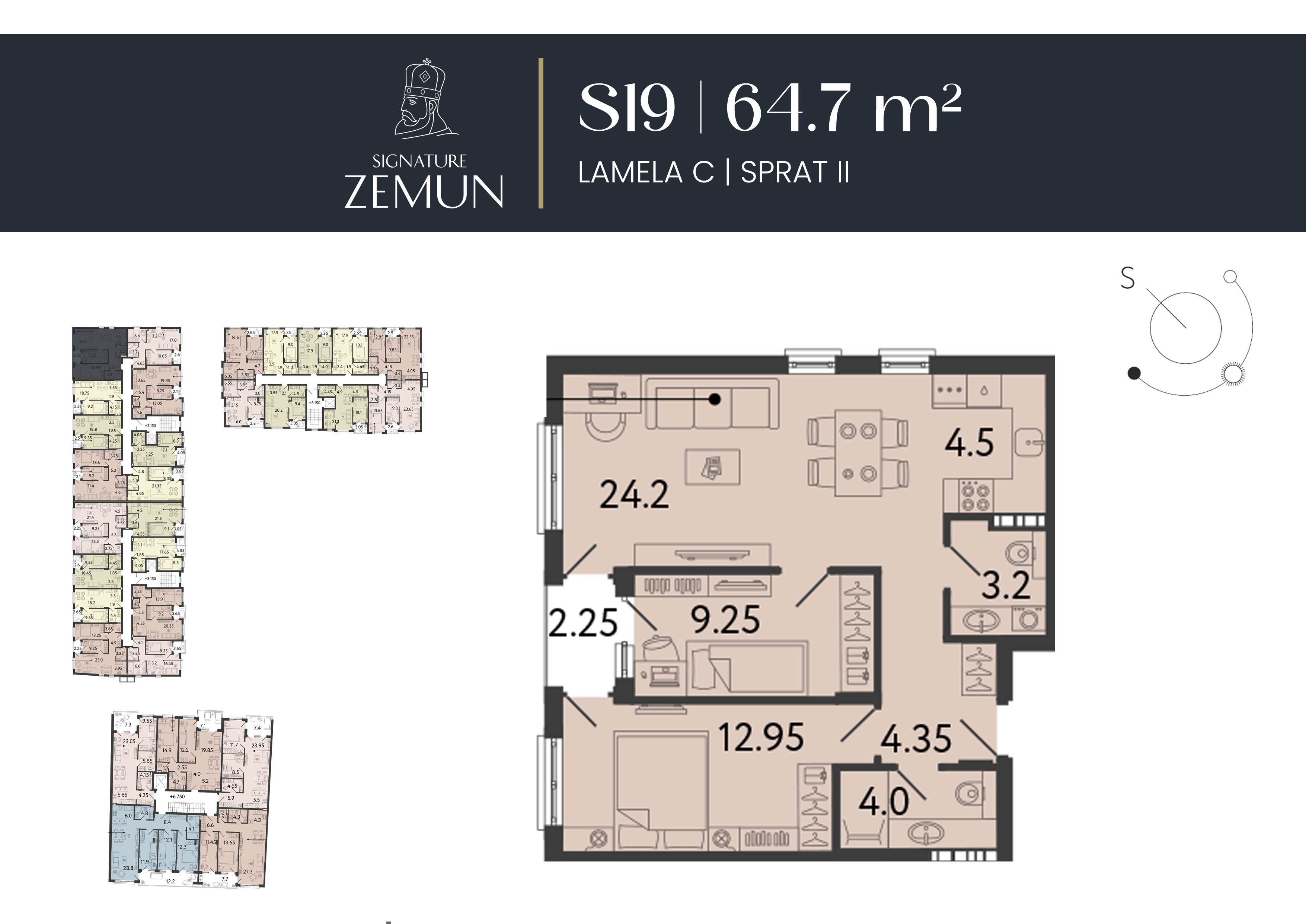 | Lamela C - S19 | 2 | 65 m² | 2 | Prodat | Plan stana | |