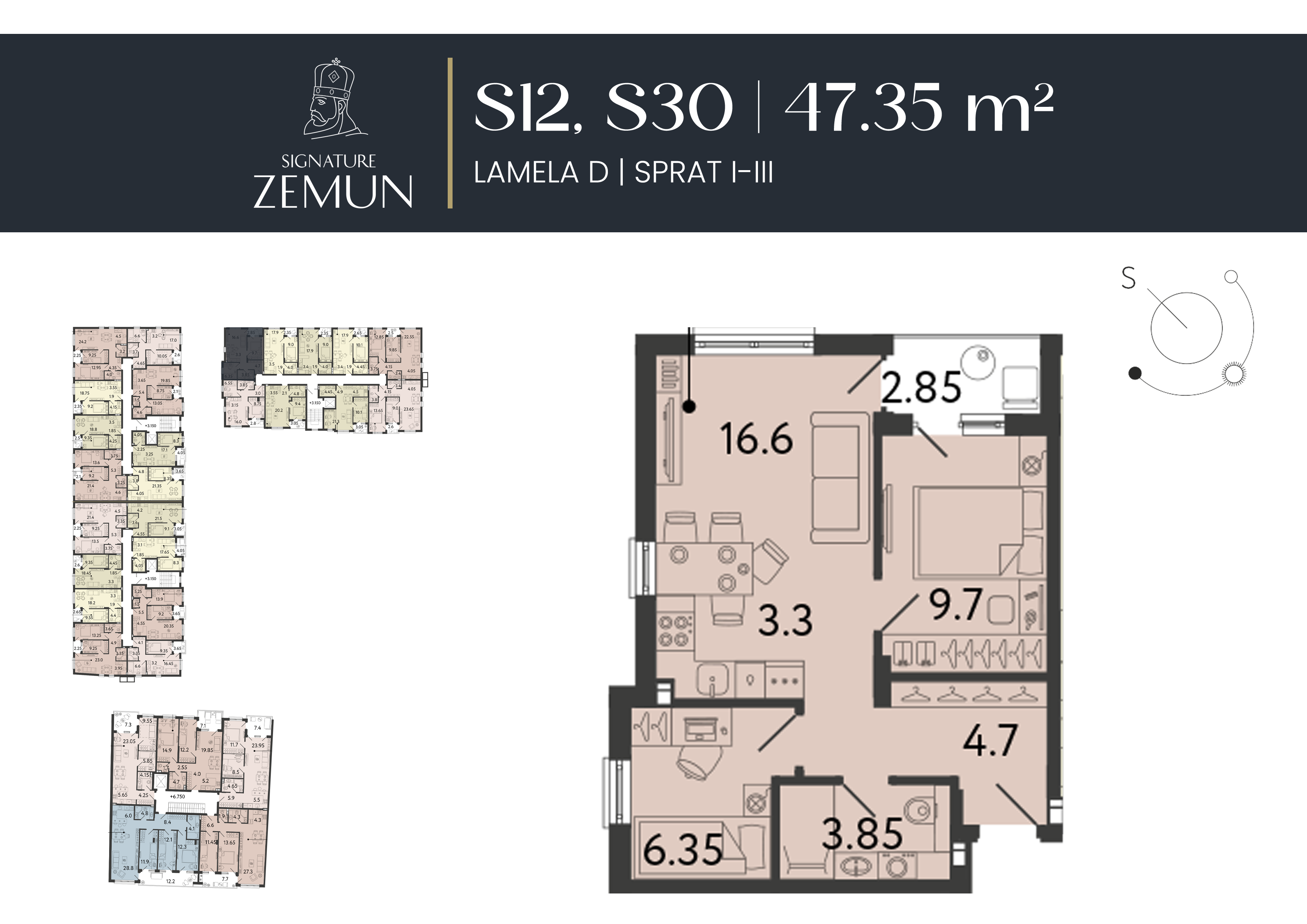 | Lamela D - S30 | 3 | 47 m² | 2 | Dostupan | Plan stana | |