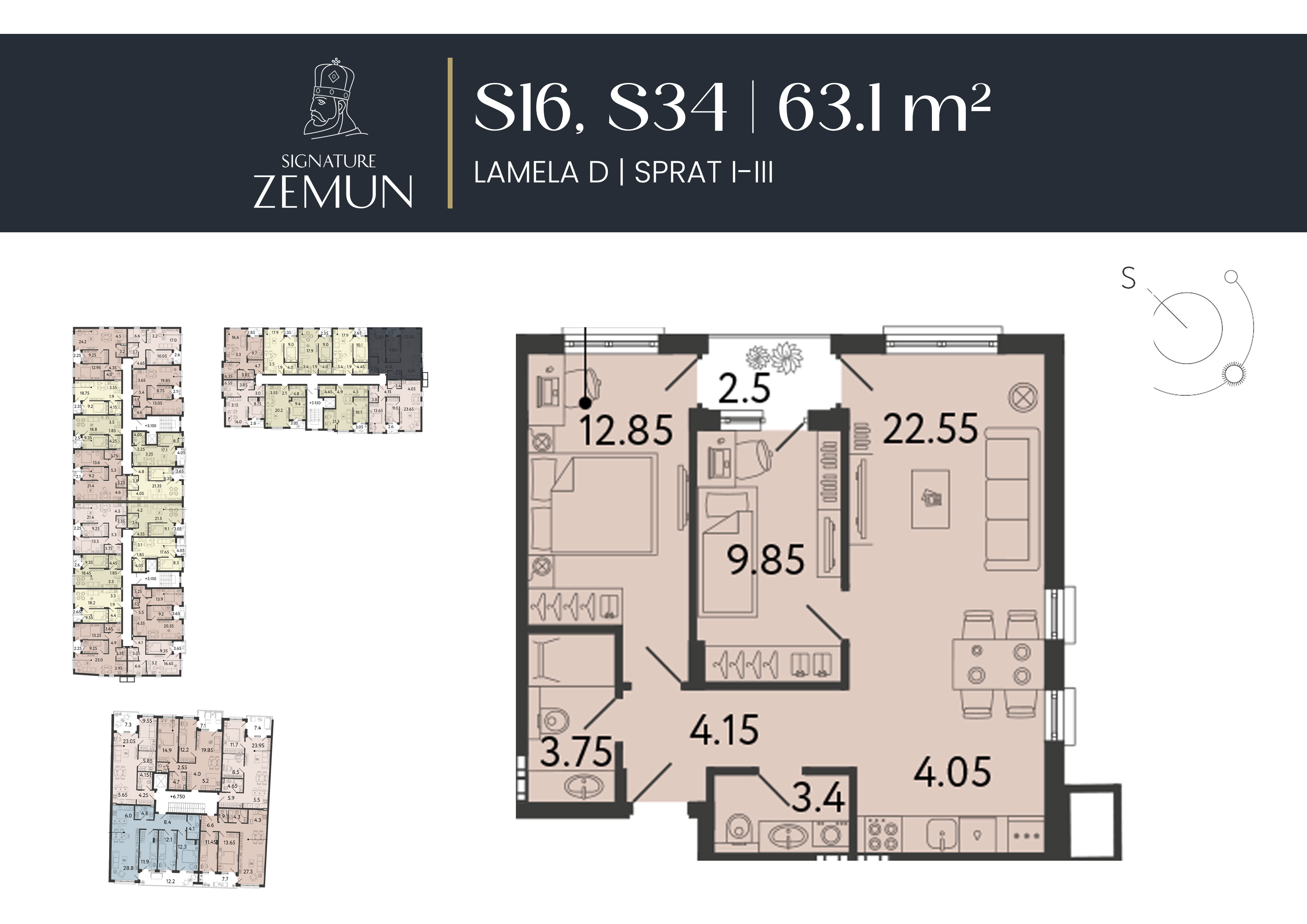 | Lamela B - S22 | 2 | 63 m² | 3 | Prodat | Plan stana | |