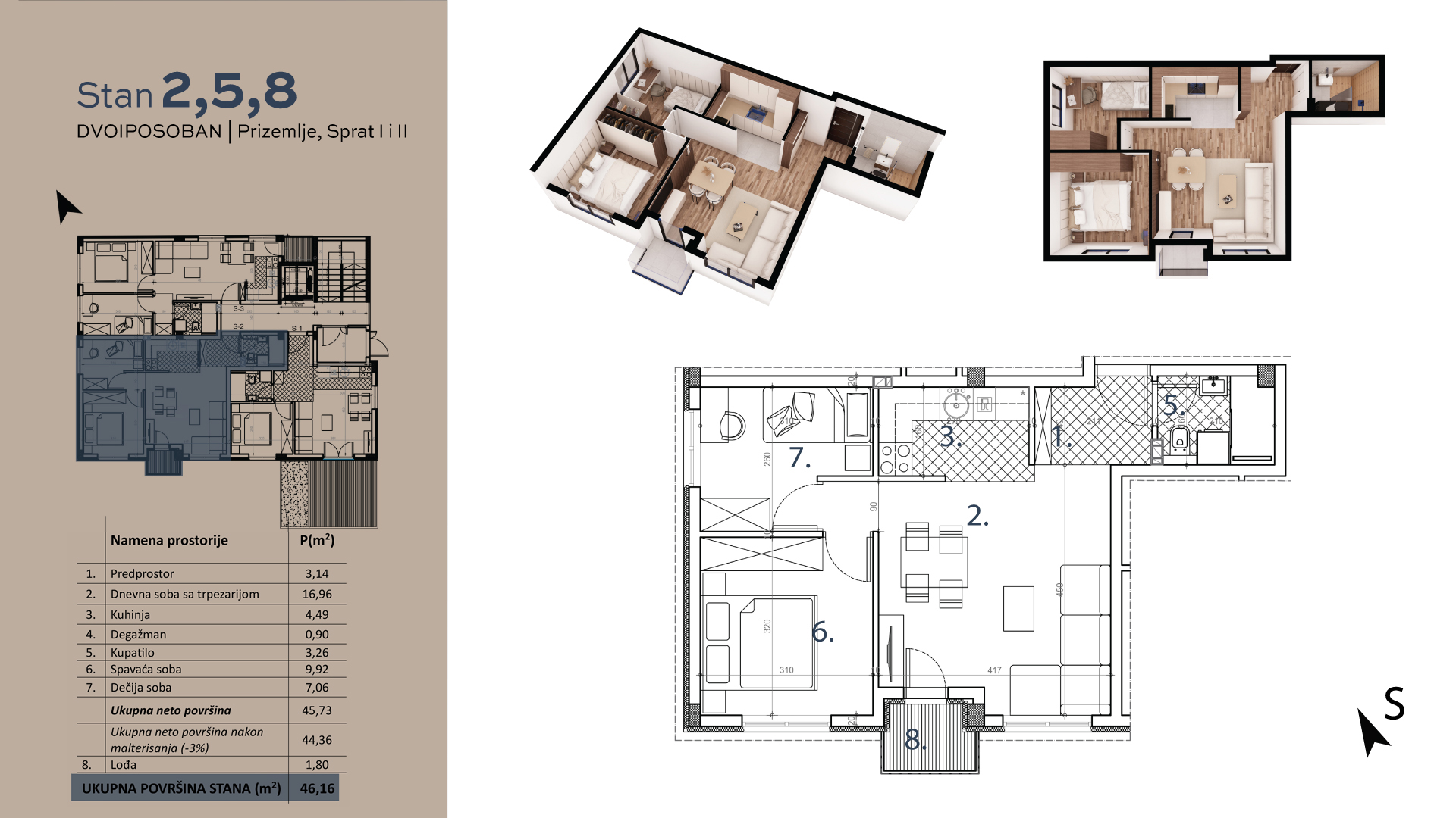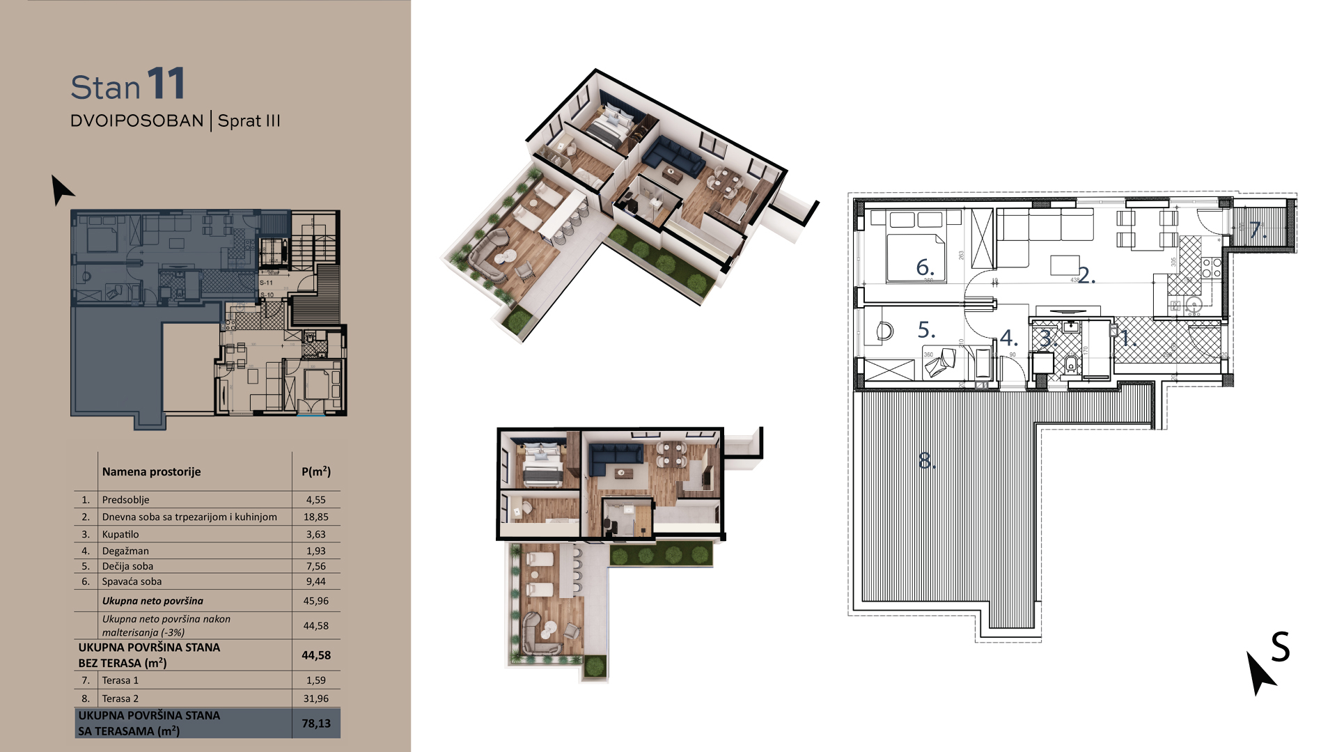 | S11 | 3 | 46 m² | 2 | Dostupan | Plan stana |