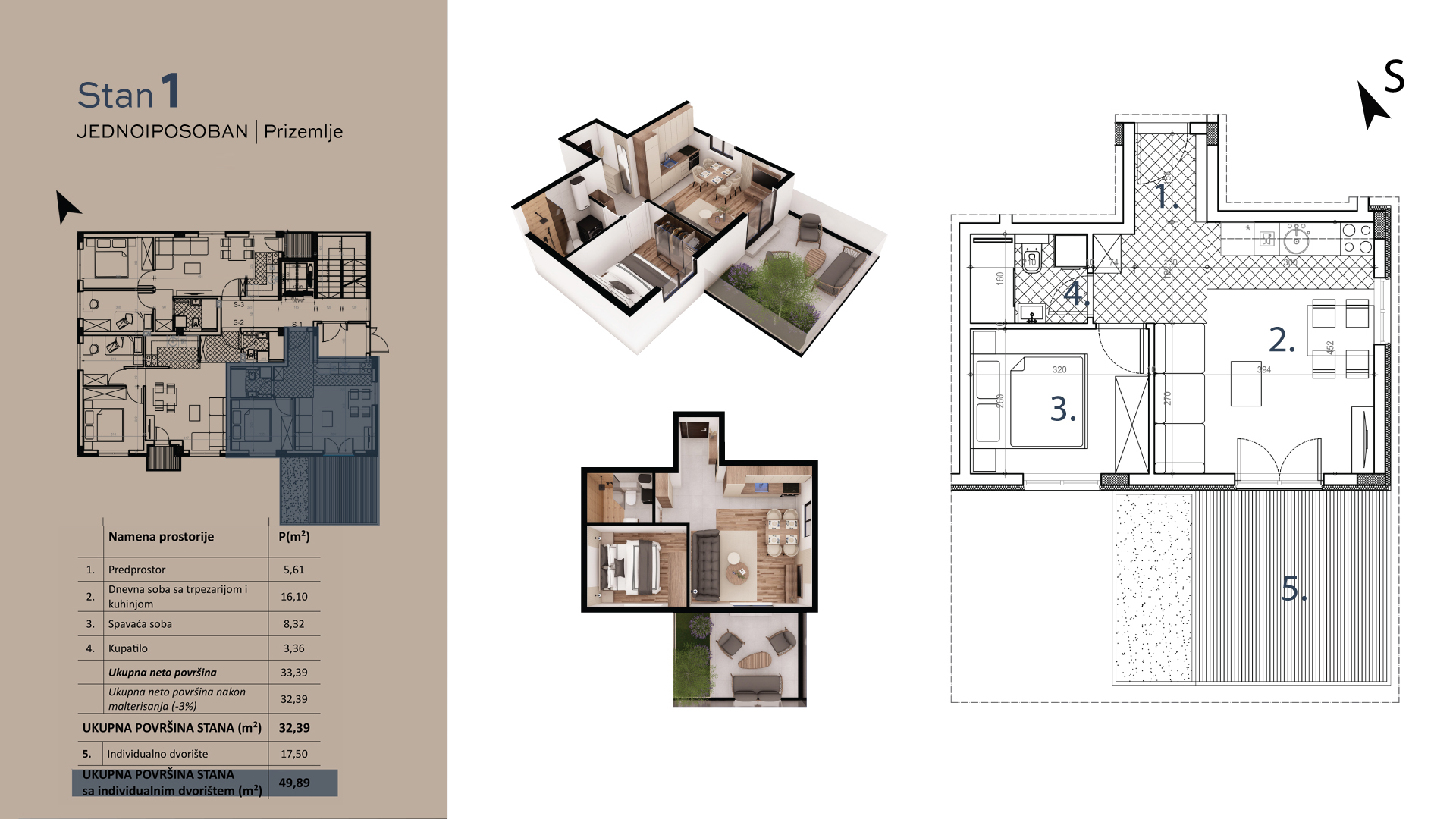 | S1 | Prizemlje | 32 m² | 1 | Dostupan | Plan stana | |