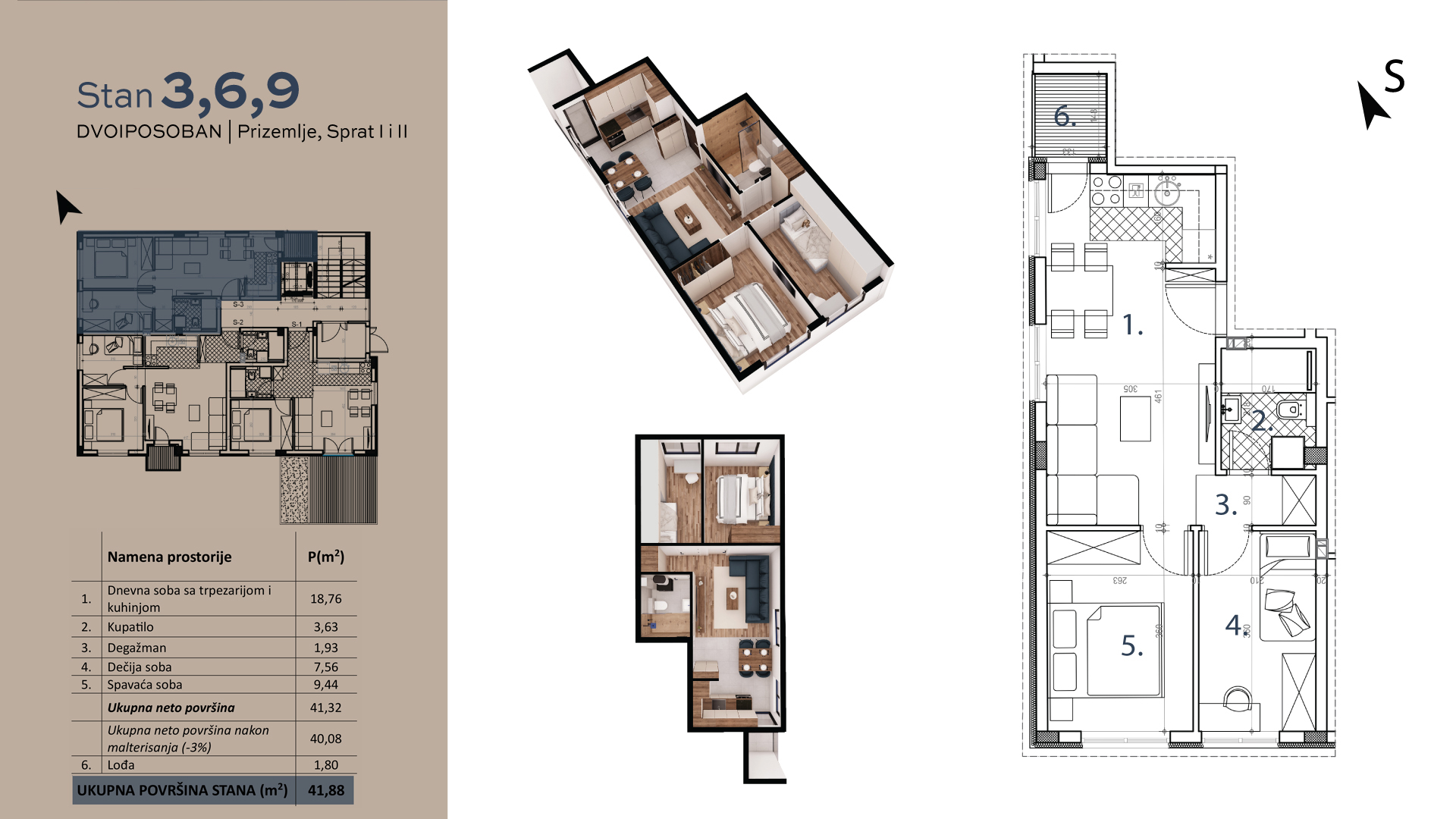 | S6 | 1 | 40 m² | 2 | Dostupan | Plan stana | |