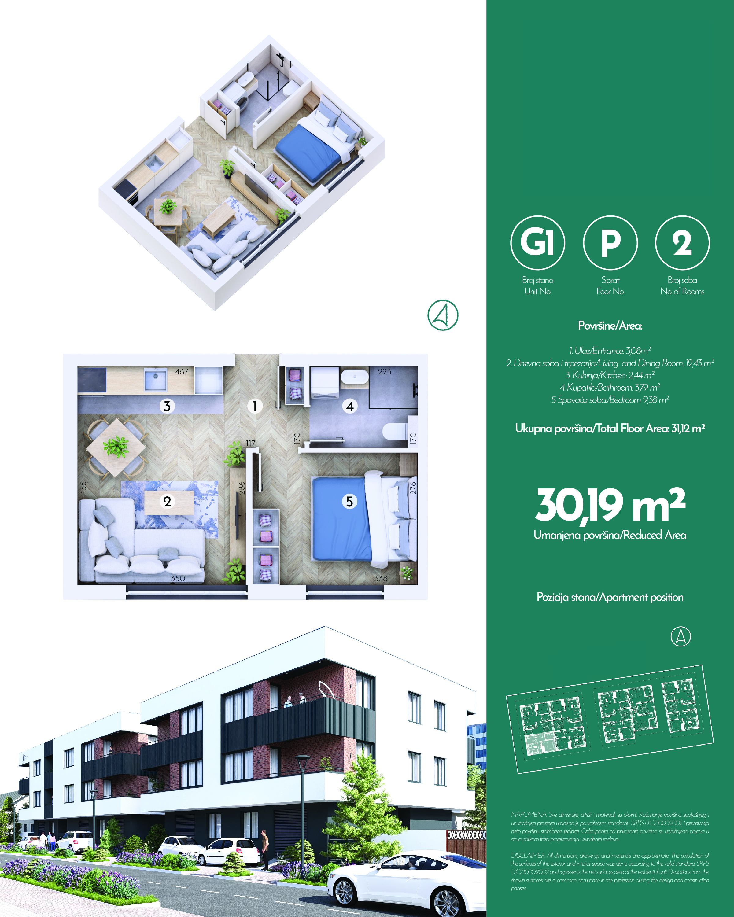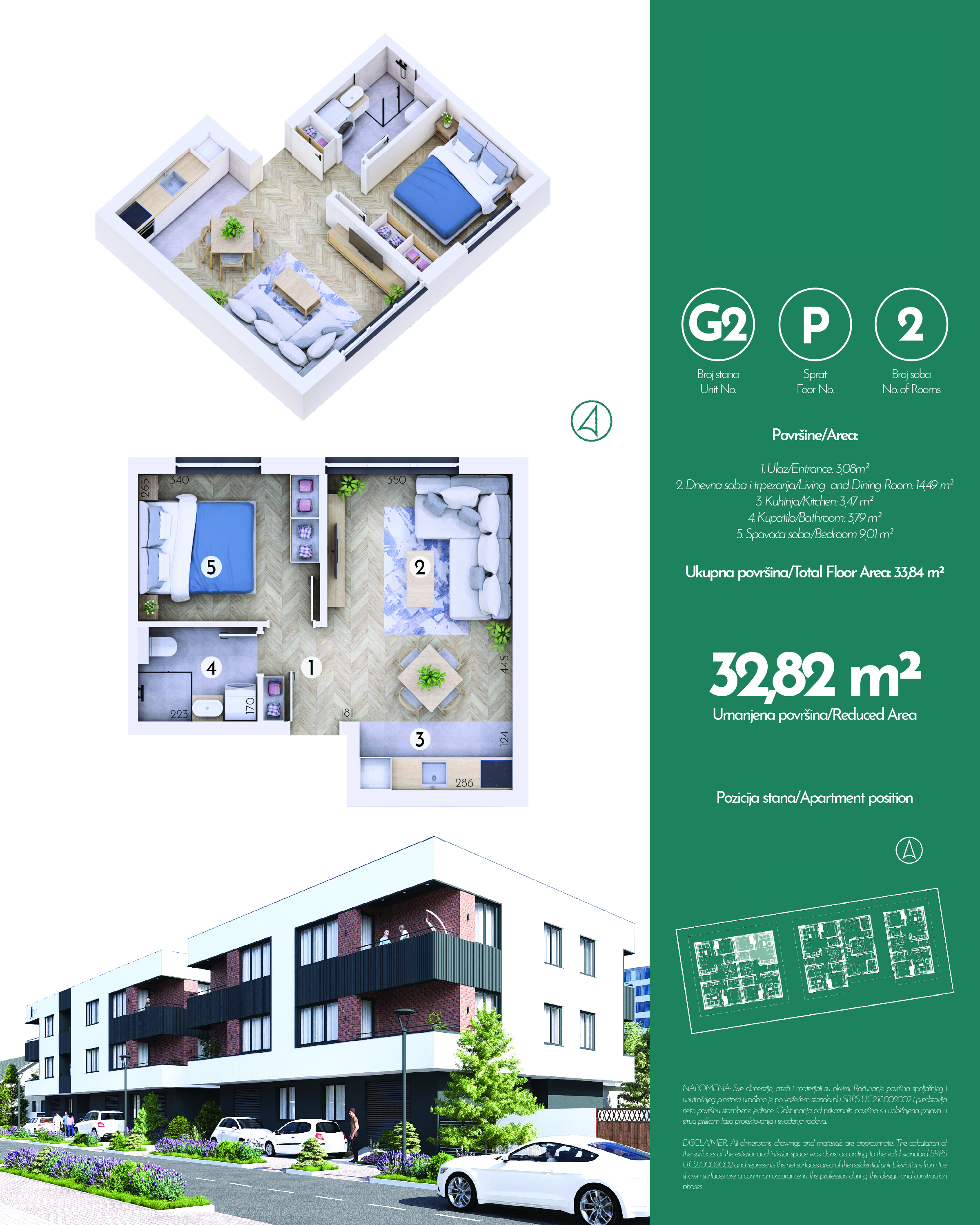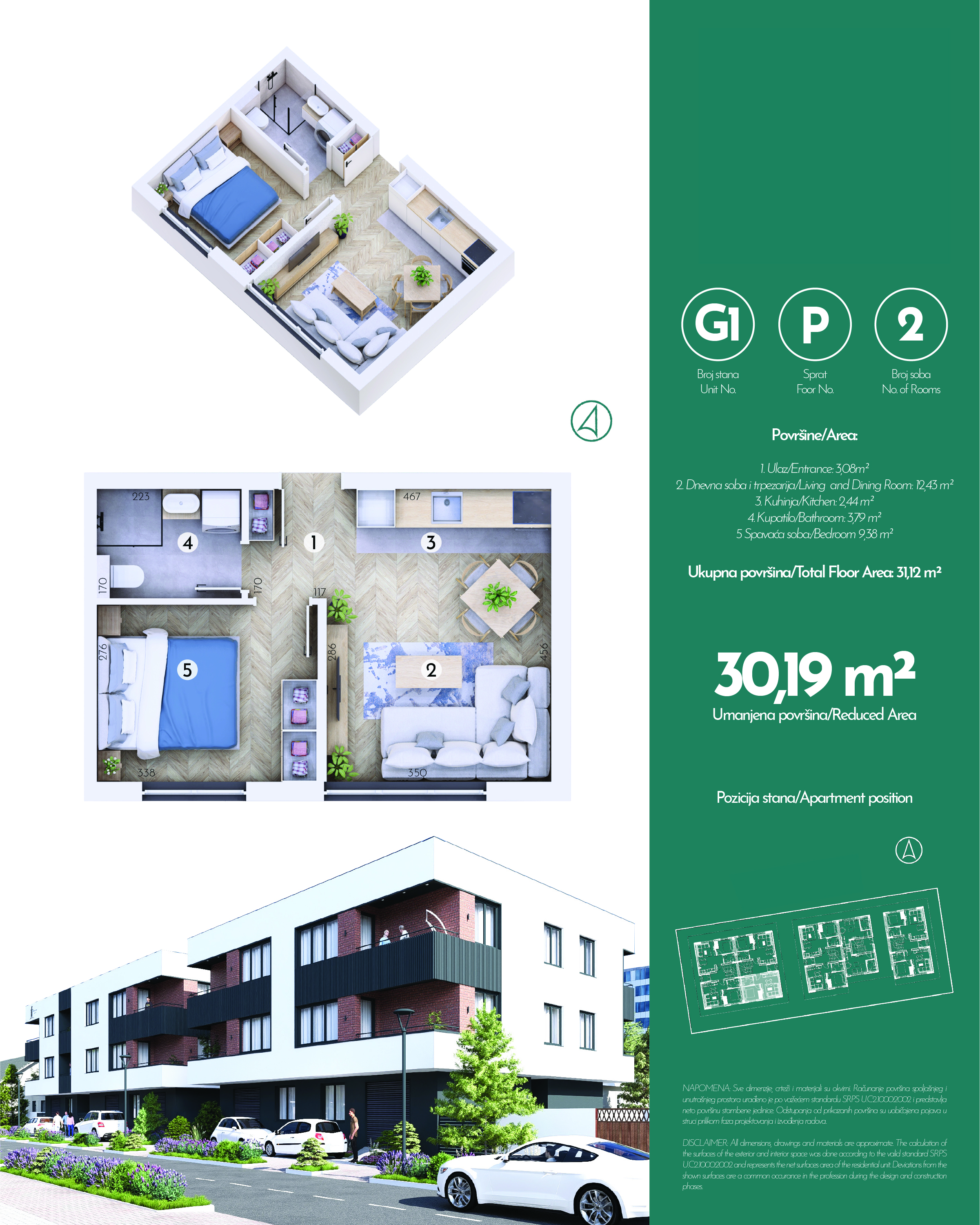 Ukupno 20 stambenih jedinica je projektovano tako da zadovolje potrebe porodica koje traže funkcionalnost, privatnost i udobnost. Dvosobne jedinice od oko 42 m² imaju odvojenu spavaću sobu, dok trosobne jedinice od oko 50–53 m² nude dve komforne spavaće sobe. Svaki stan odlikuje odlična organizacija prostora, prirodna svetlost i praktična raspodela prostorija. Parking mesta su spoljašnja, numerisana i dostupna uz doplatu.