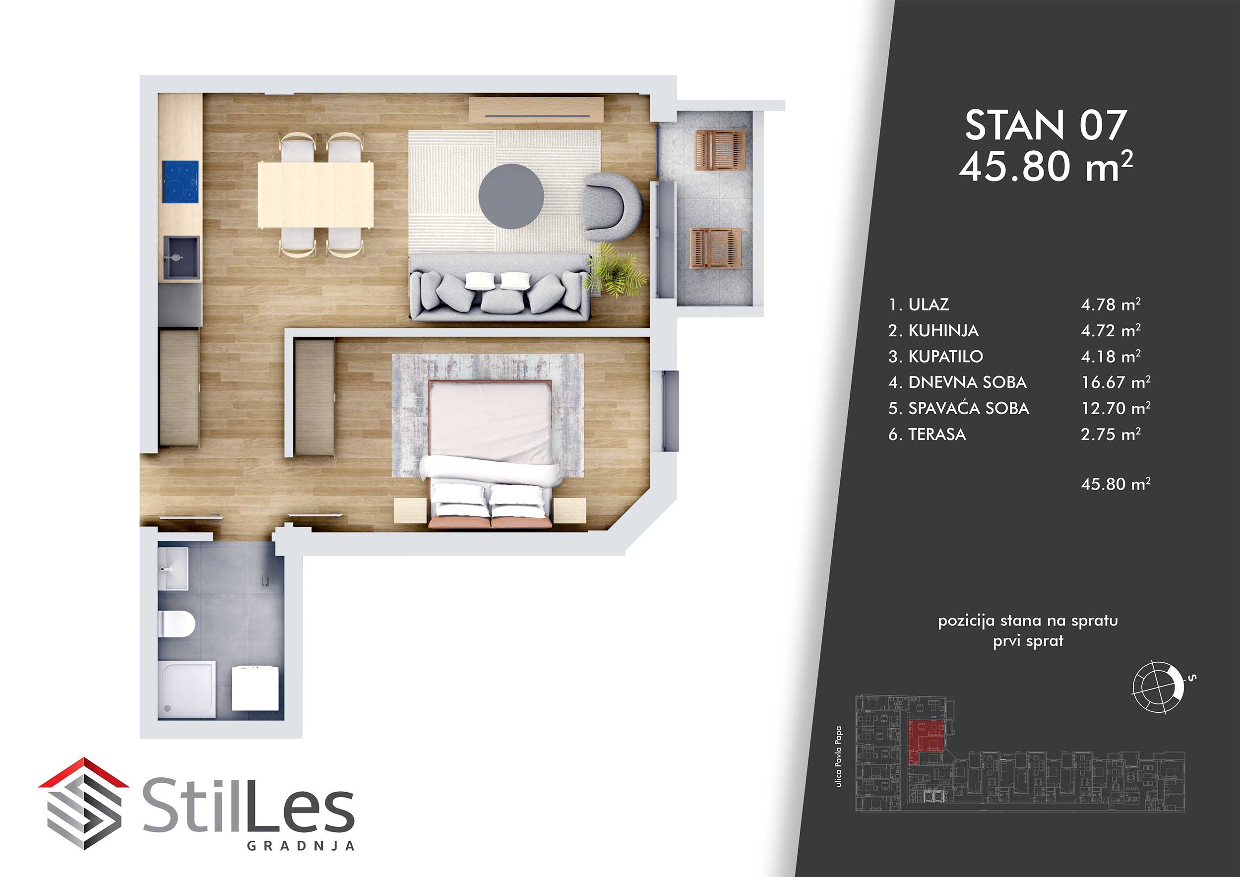 | STAN 7 | 1 | 46 m² | 1 | Dostupan | Plan stana | |