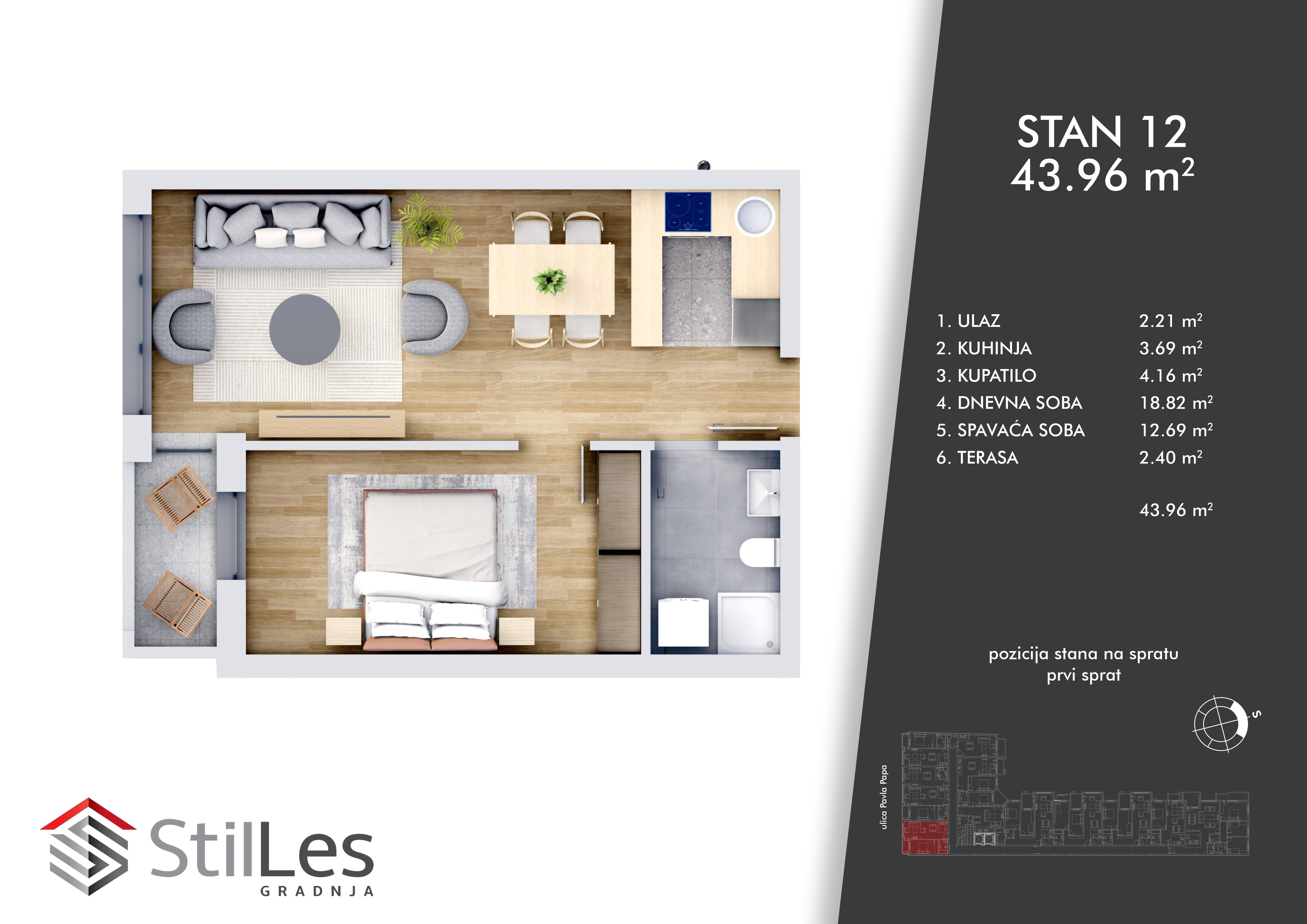 | STAN 12 | 1 | 44 m² | 1 | Dostupan | Plan stana | |