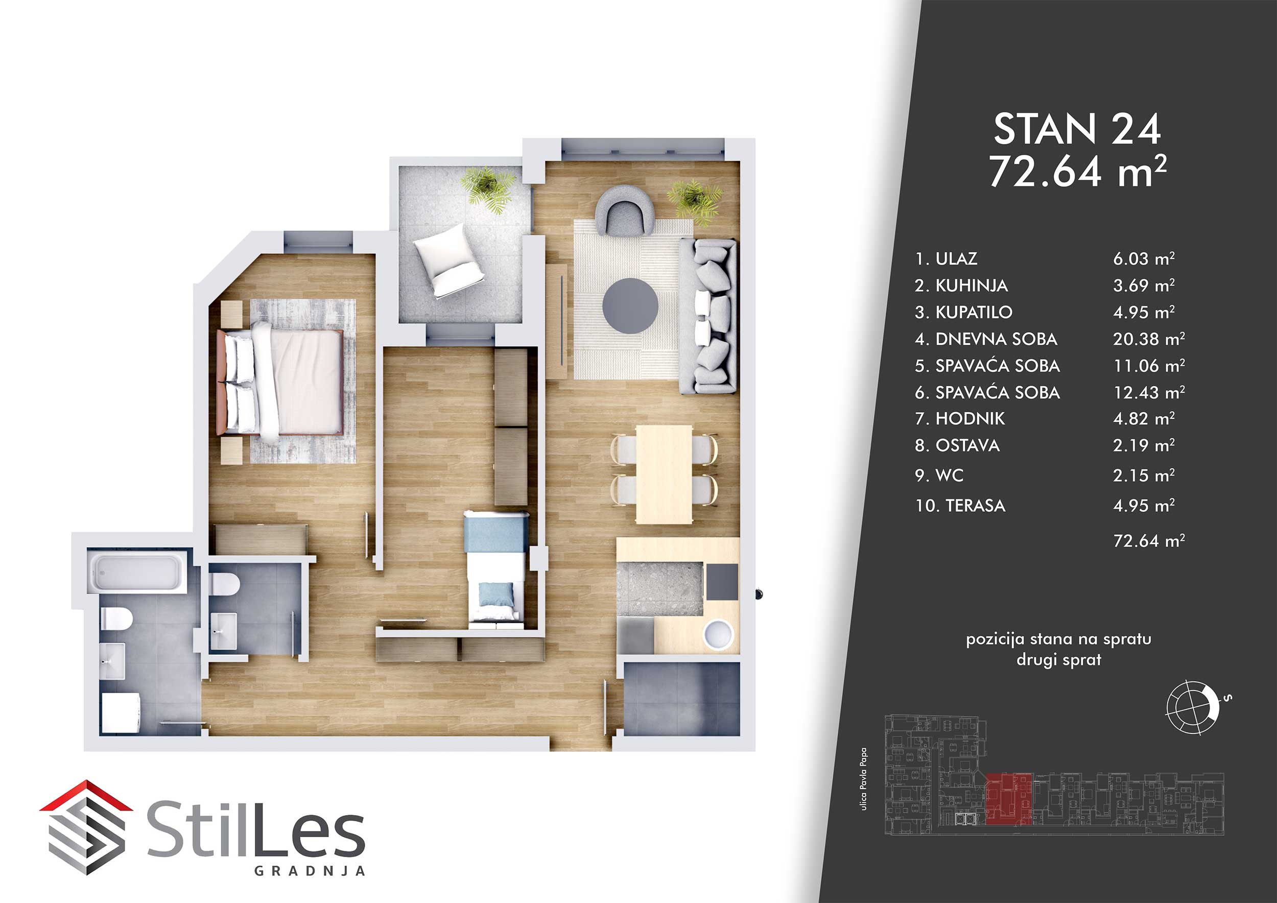 | STAN 24 | 2 | 73 m² | 2 | Dostupan | Plan stana | |
