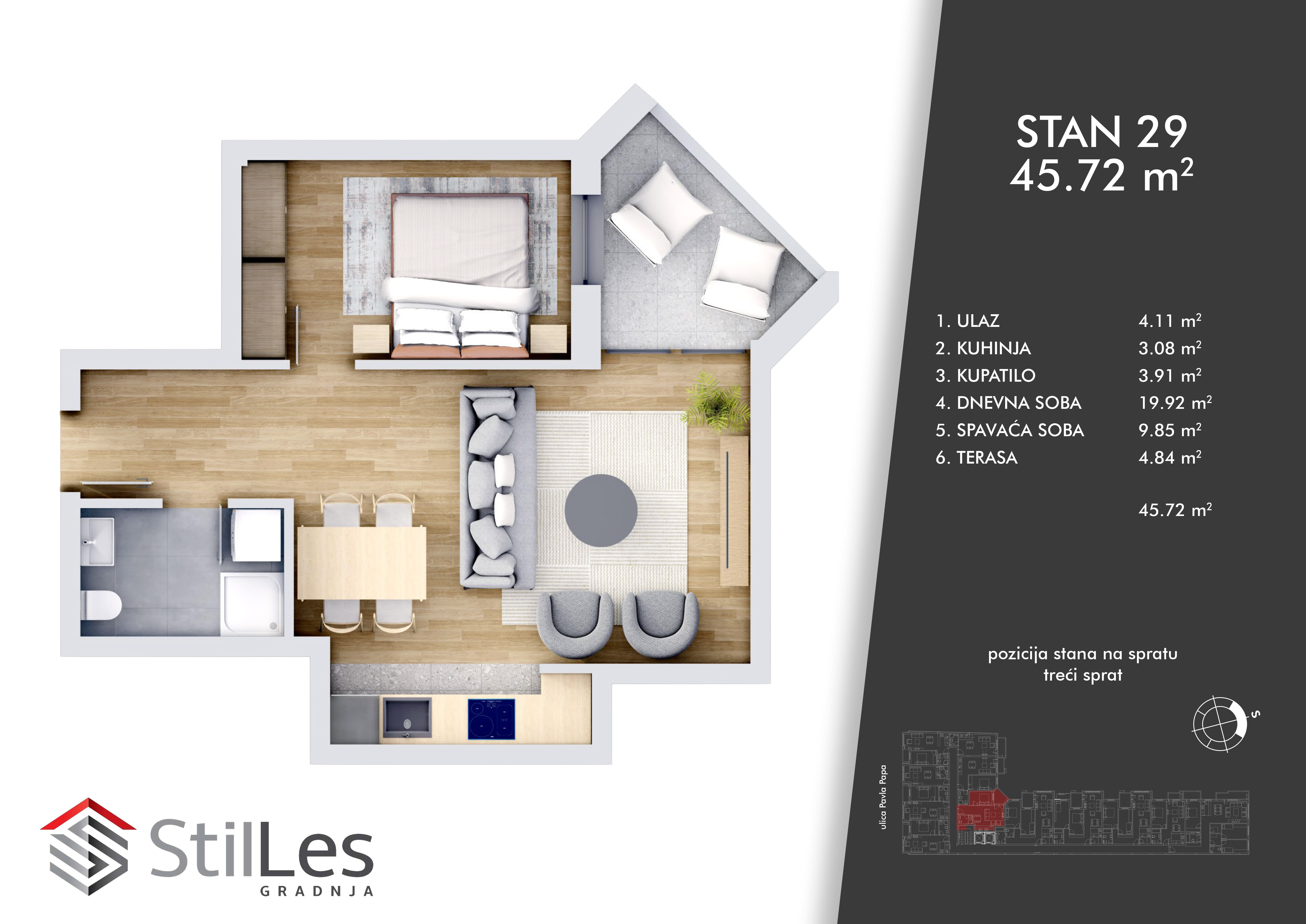 | STAN 29 | 3 | 46 m² | 1 | Prodat | Plan stana | |