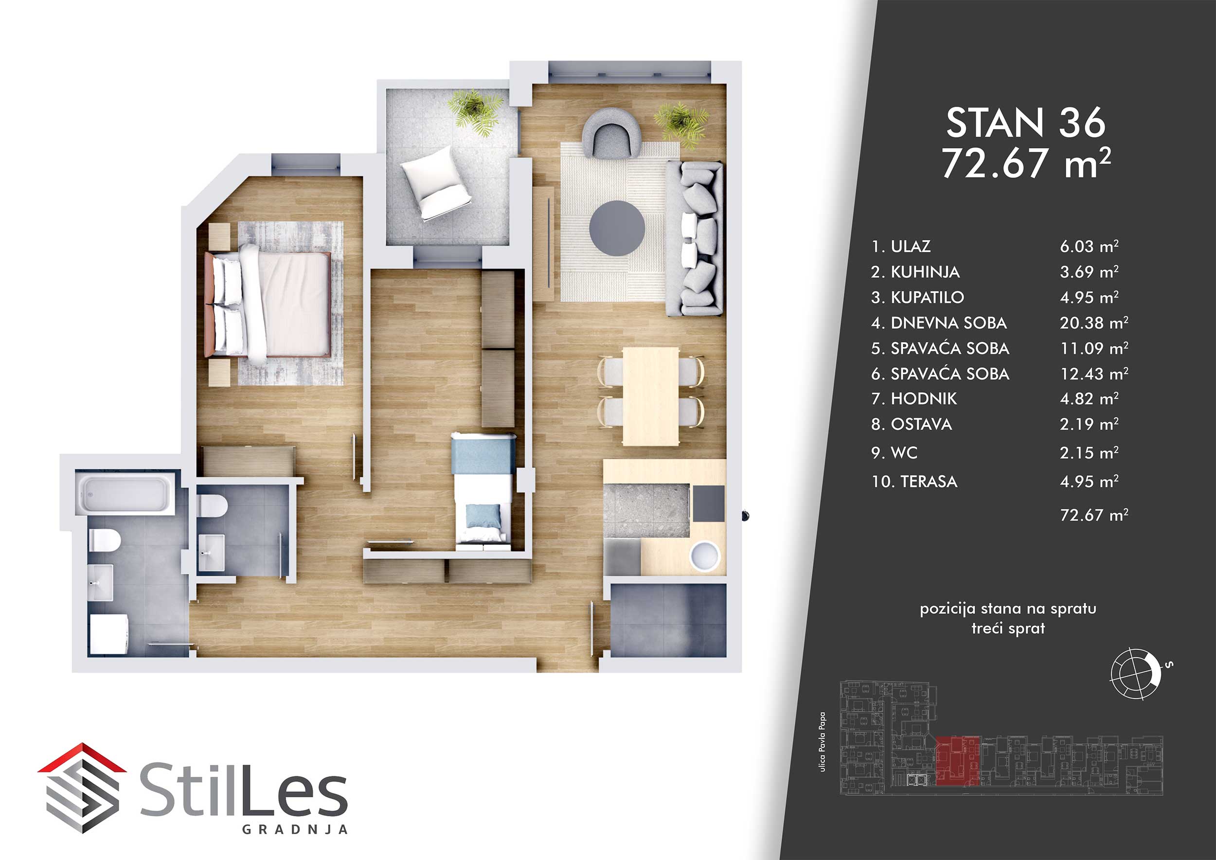 | STAN 36 | 3 | 73 m² | 2 | Dostupan | Plan stana | |