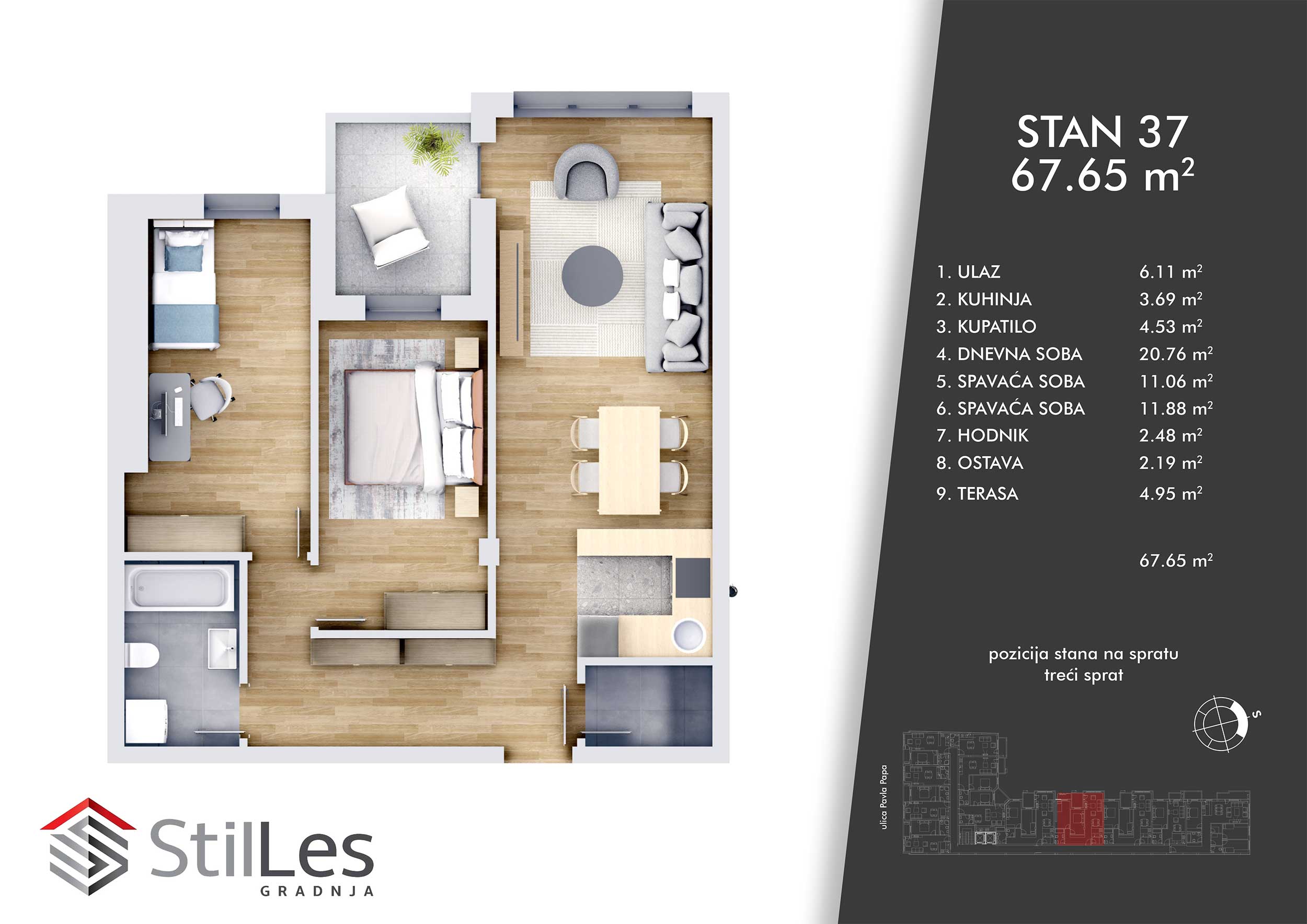 | STAN 37 | 3 | 68 m² | 2 | Dostupan | Plan stana | |