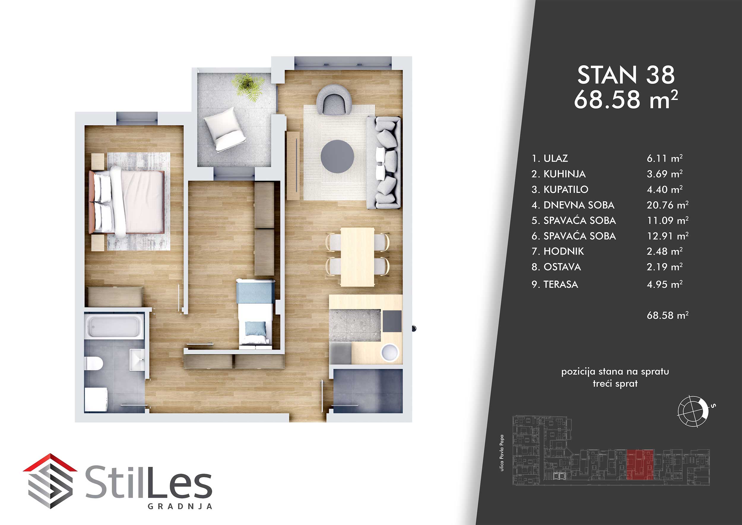 | STAN 38 | 3 | 69 m² | 2 | Dostupan | Plan stana | |