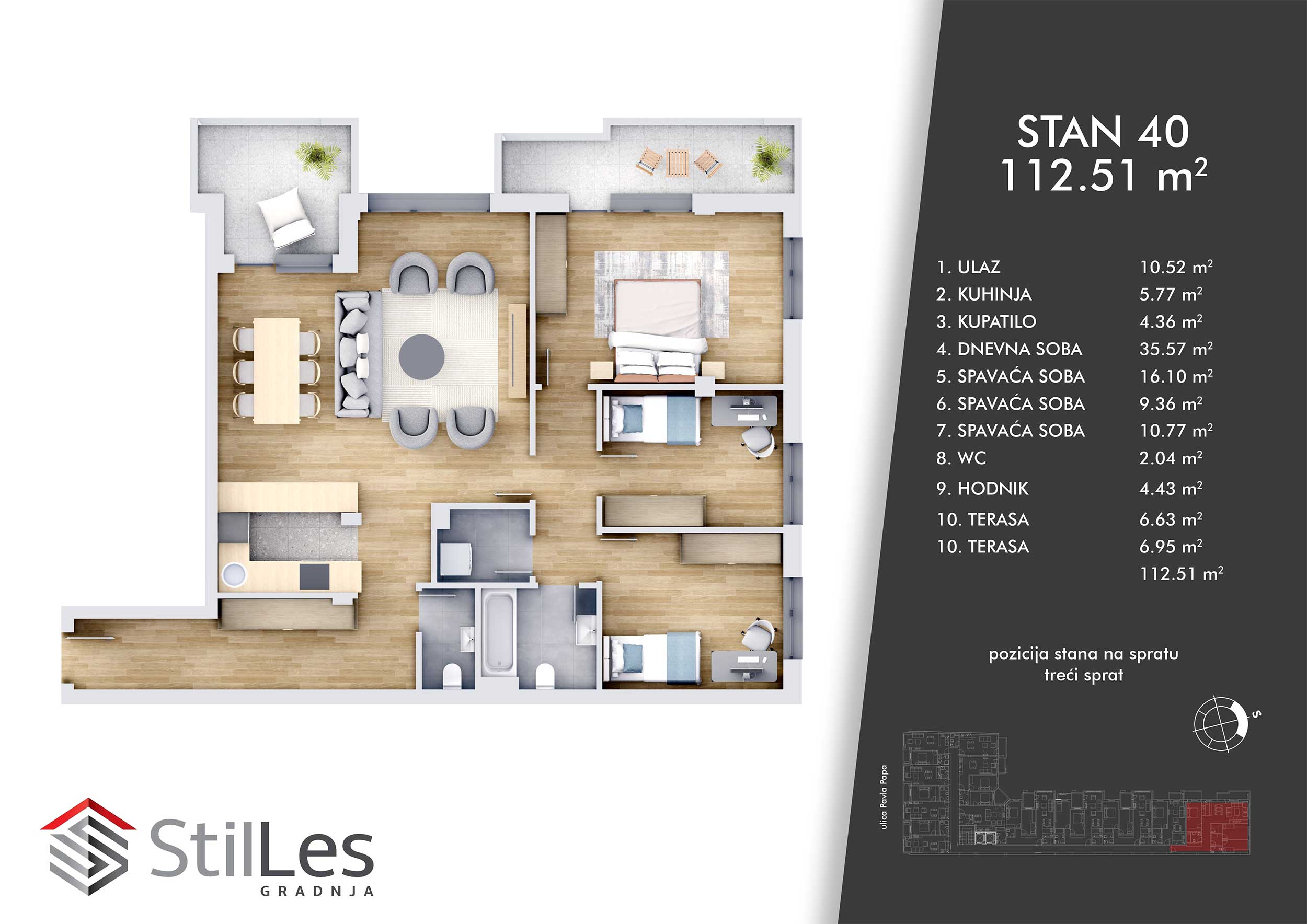 | STAN 40 | 3 | 113 m² | 3 | Dostupan | Plan stana | |