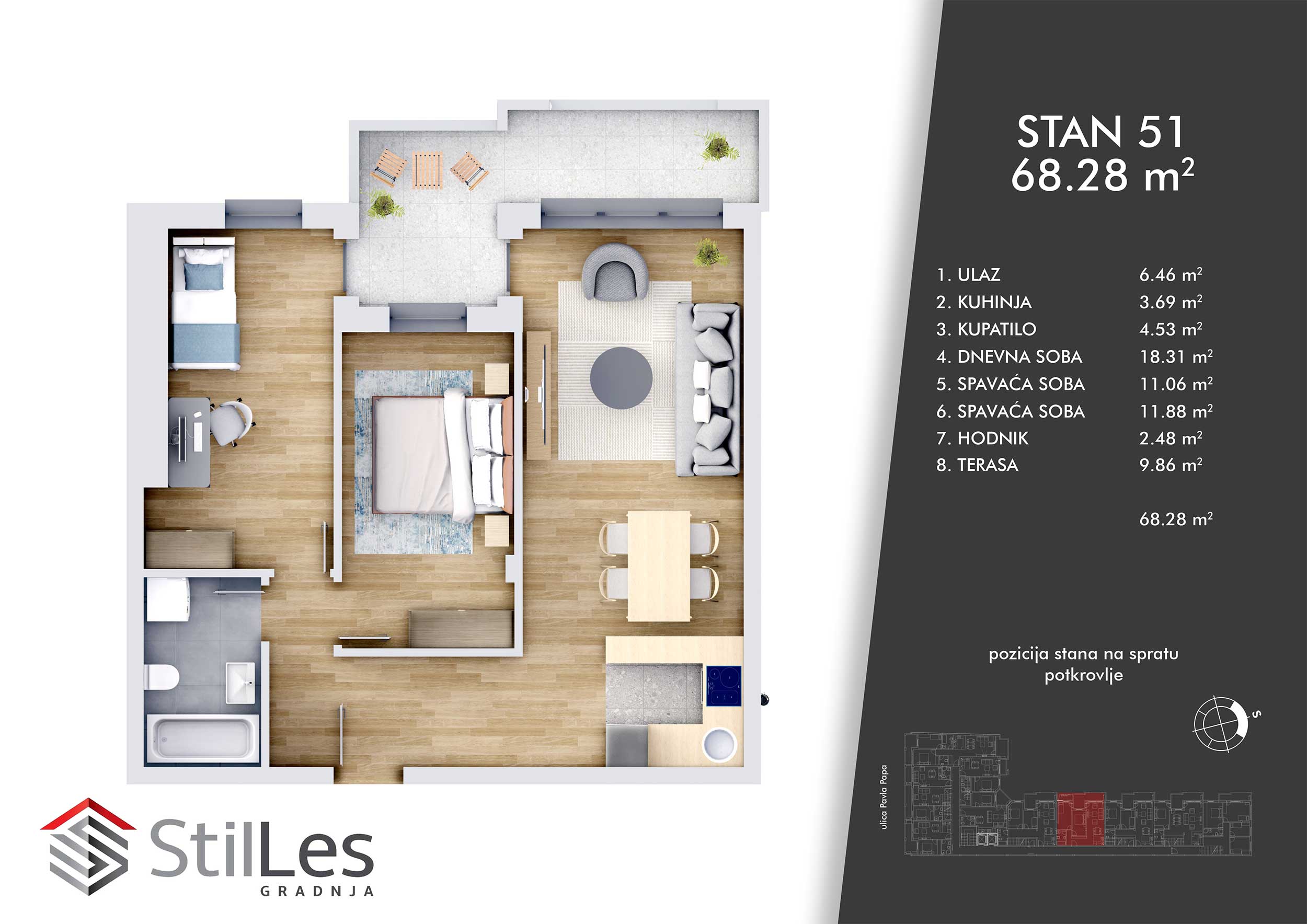 | STAN 51 | Potkrovlje | 69 m² | 2 | Prodat | Plan stana | |