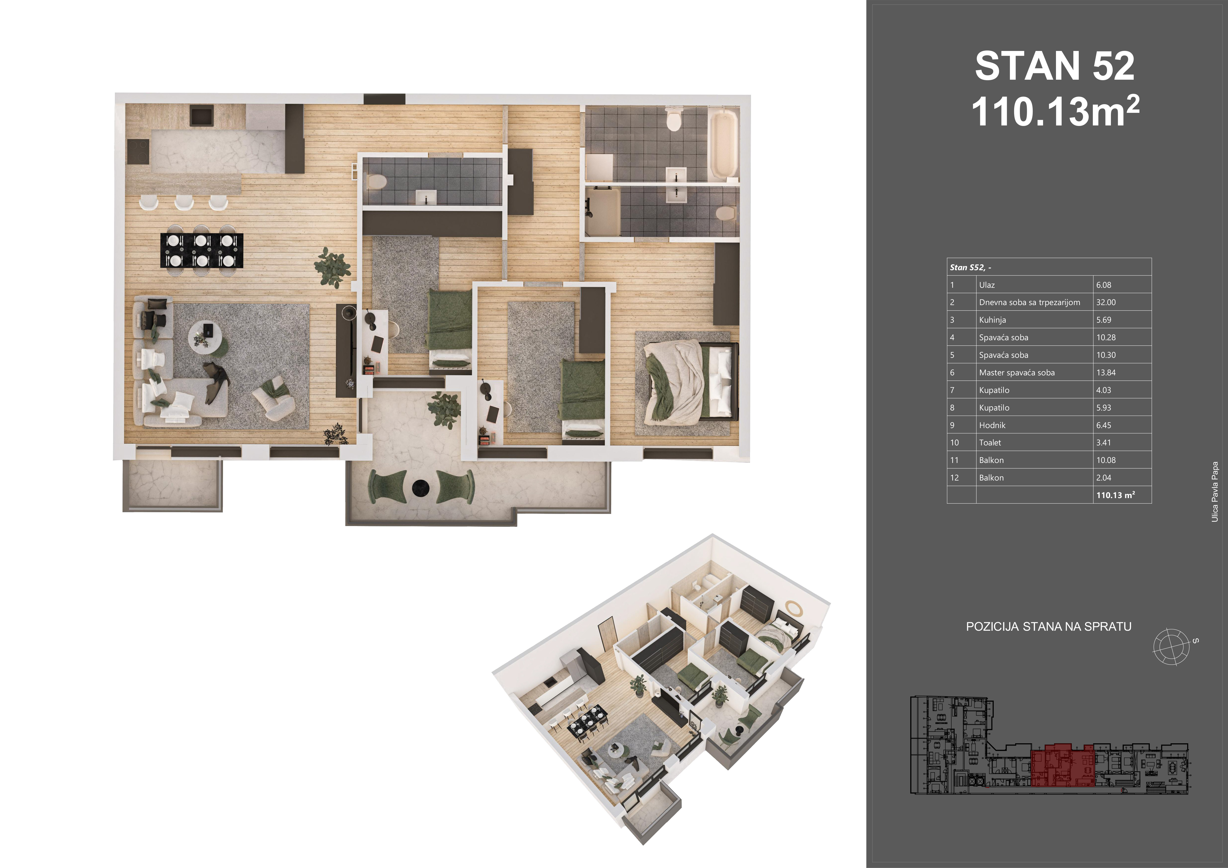| STAN 52 | Potkrovlje | 110 m² | 3 | Dostupan | Plan stana | |