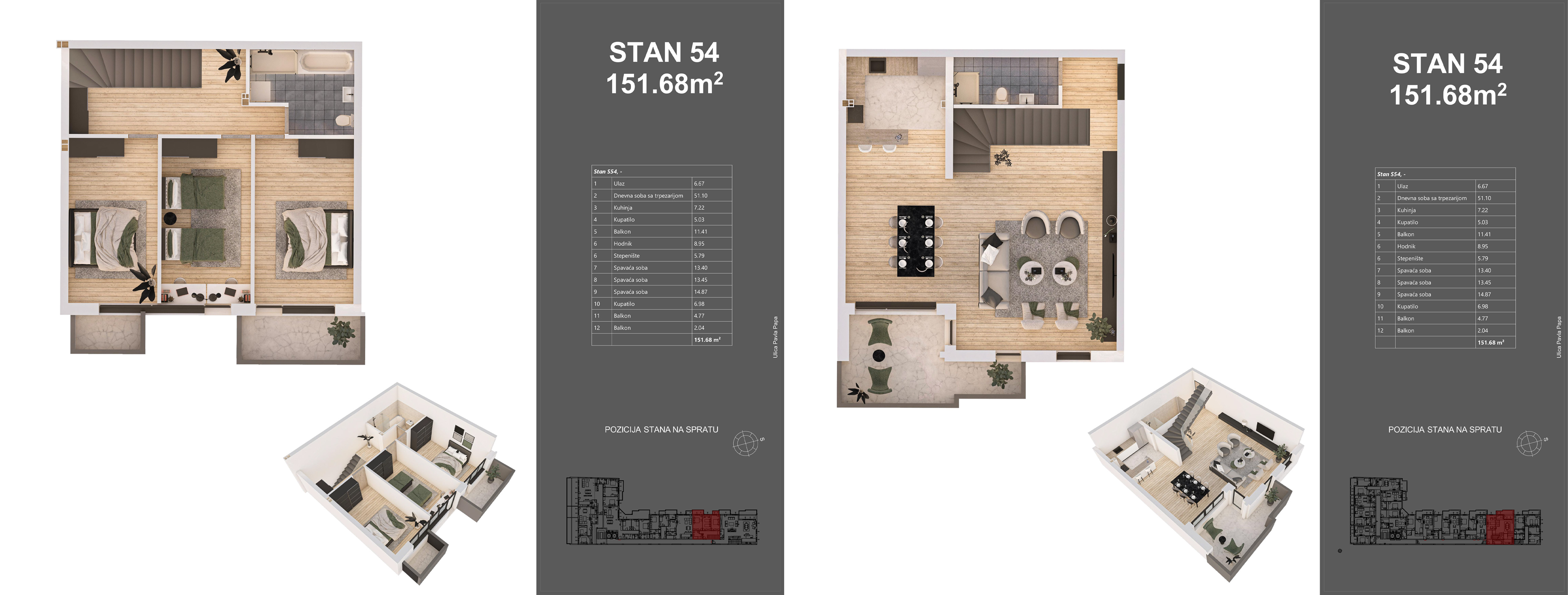 | STAN 54 | Potkrovlje | 152 m² | 3 | Dostupan | Plan stana | |