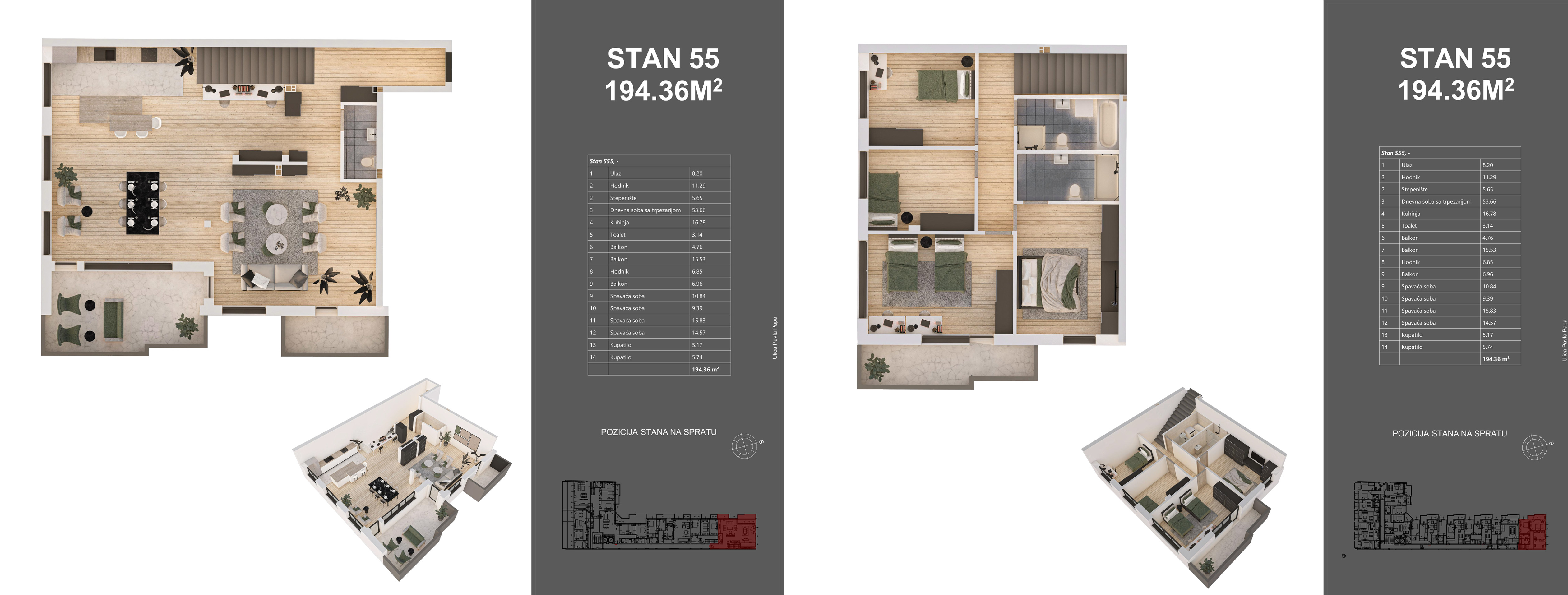 | STAN 55 | Potkrovlje | 194 m² | 4 | Prodat | Plan stana |