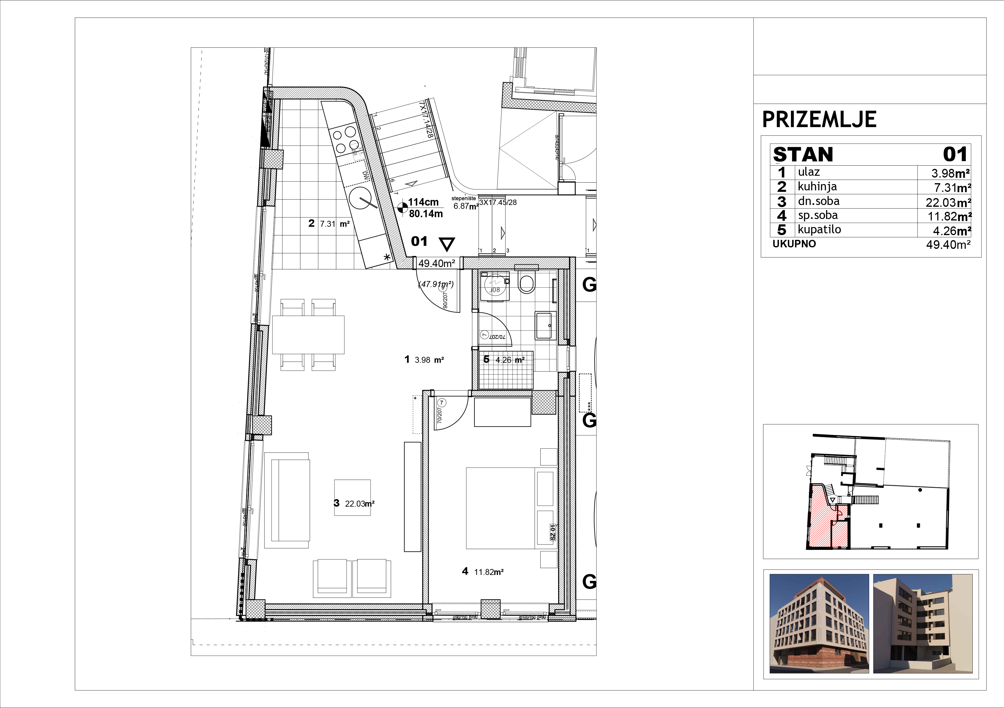 | Stan 1 | Prizemlje | 49 m² | 1 | Dostupan | Plan stana | |