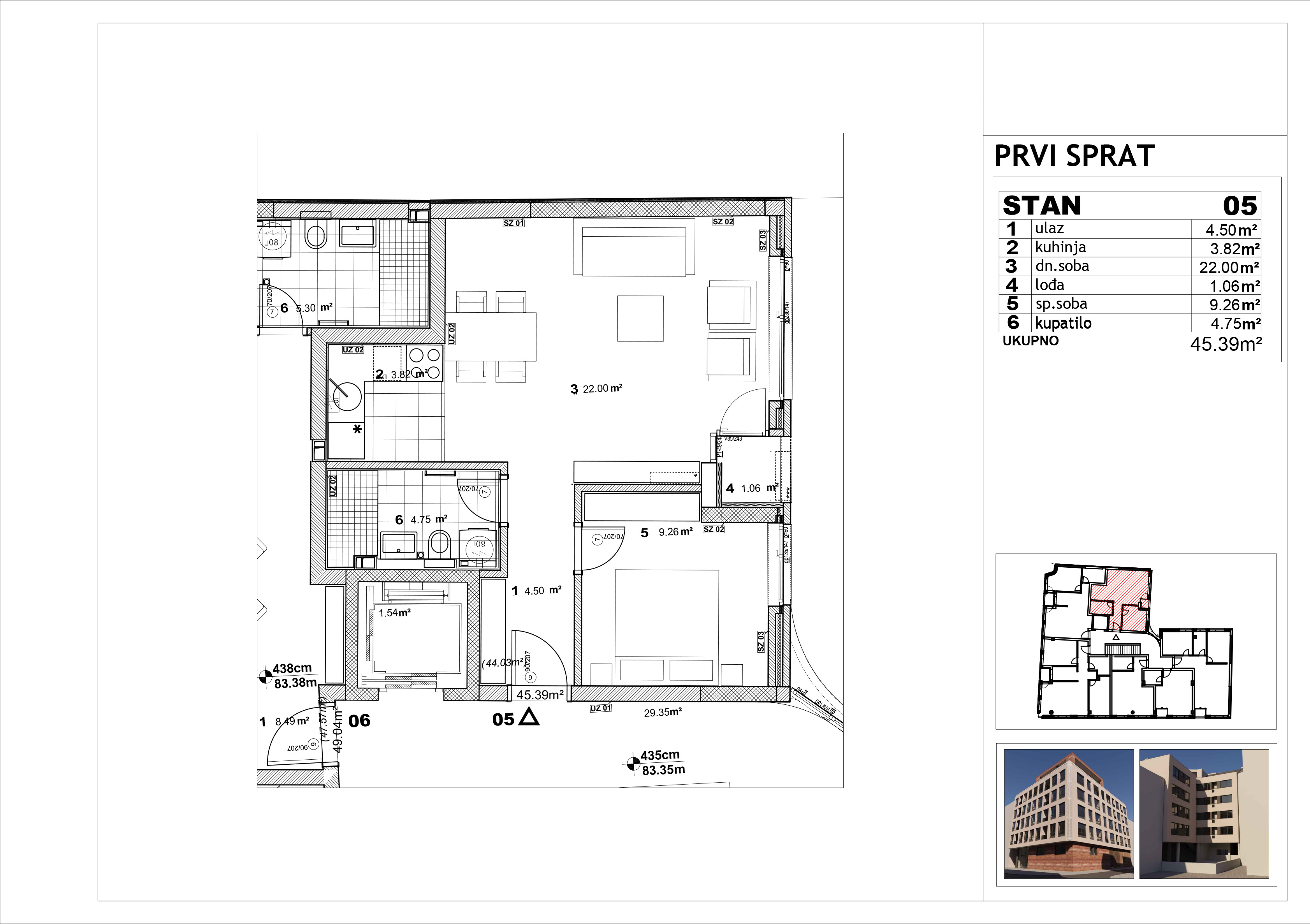| Stan 5 | 1 | 45 m² | 1 | Dostupan | Plan stana | |