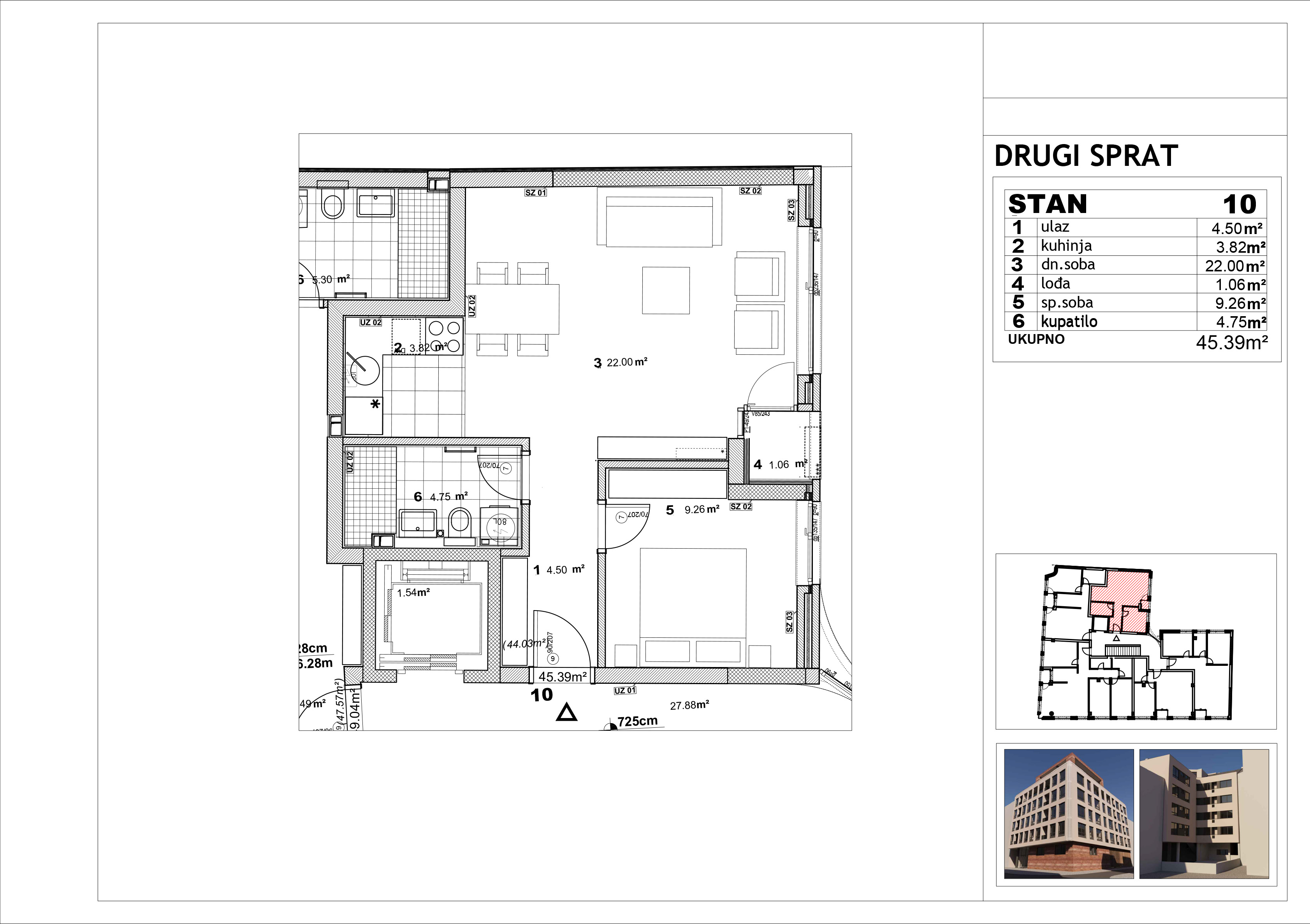 | Stan 10 | 2 | 45 m² | 1 | Dostupan | Plan stana | |