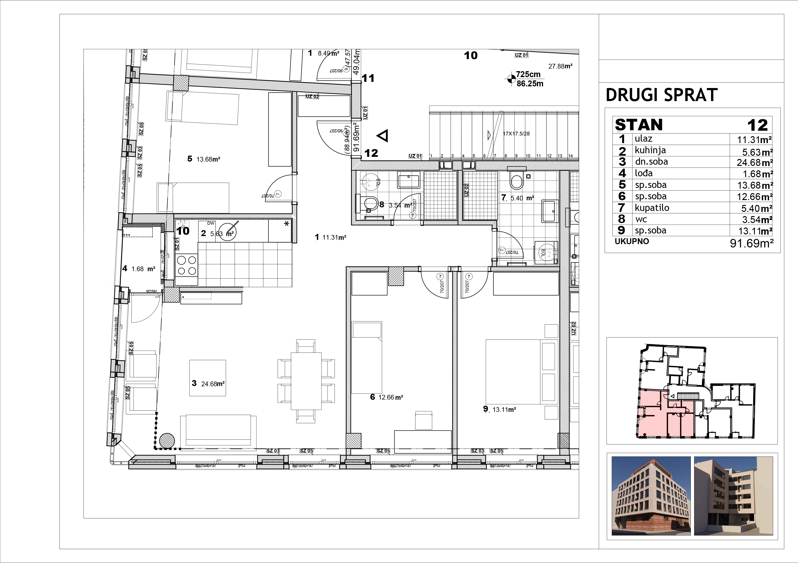 | Stan 12 | 2 | 91 m² | 3 | Prodat | Plan stana | |