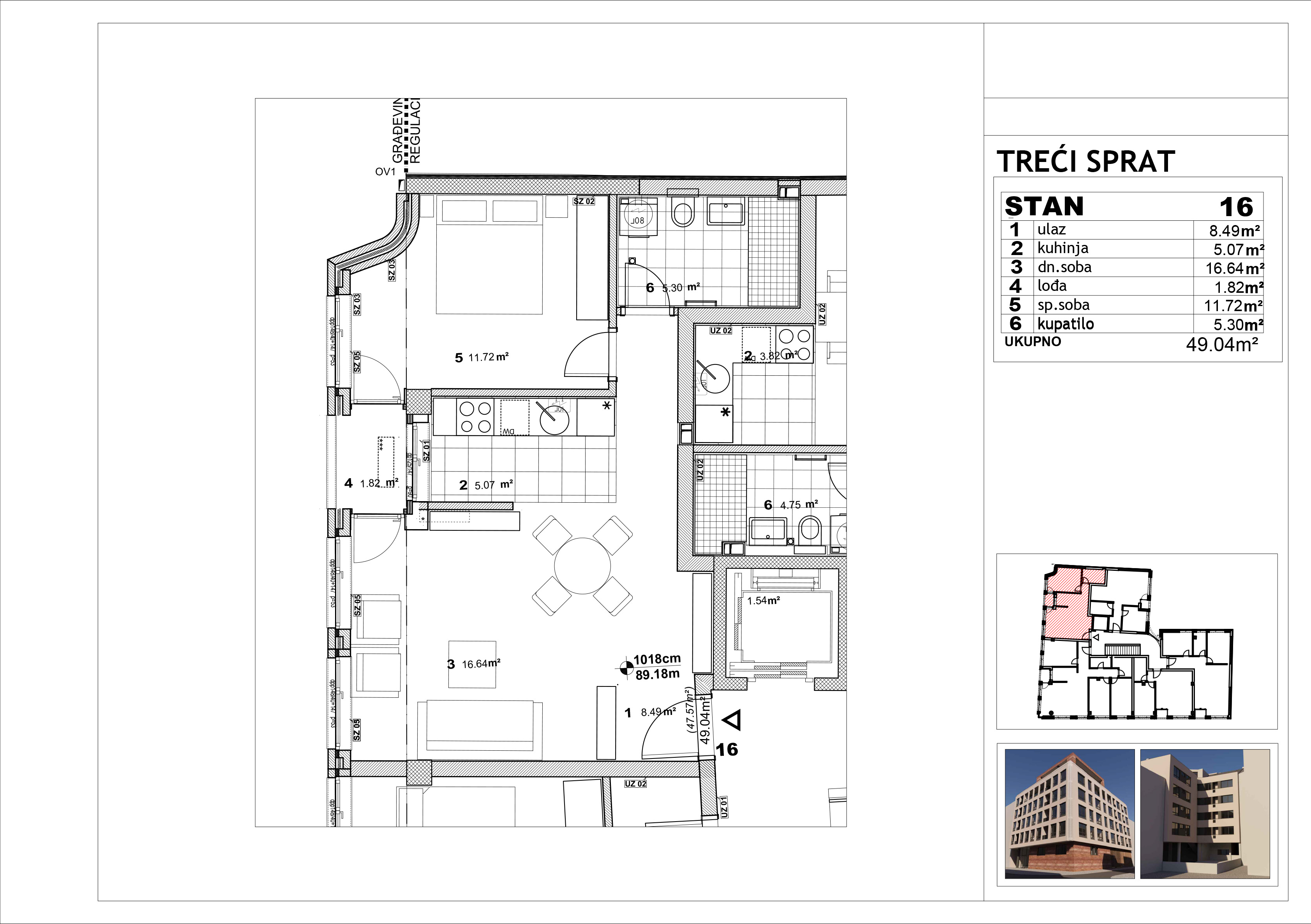 | Stan 16 | 3 | 49 m² | 1 | Prodat | Plan stana | |