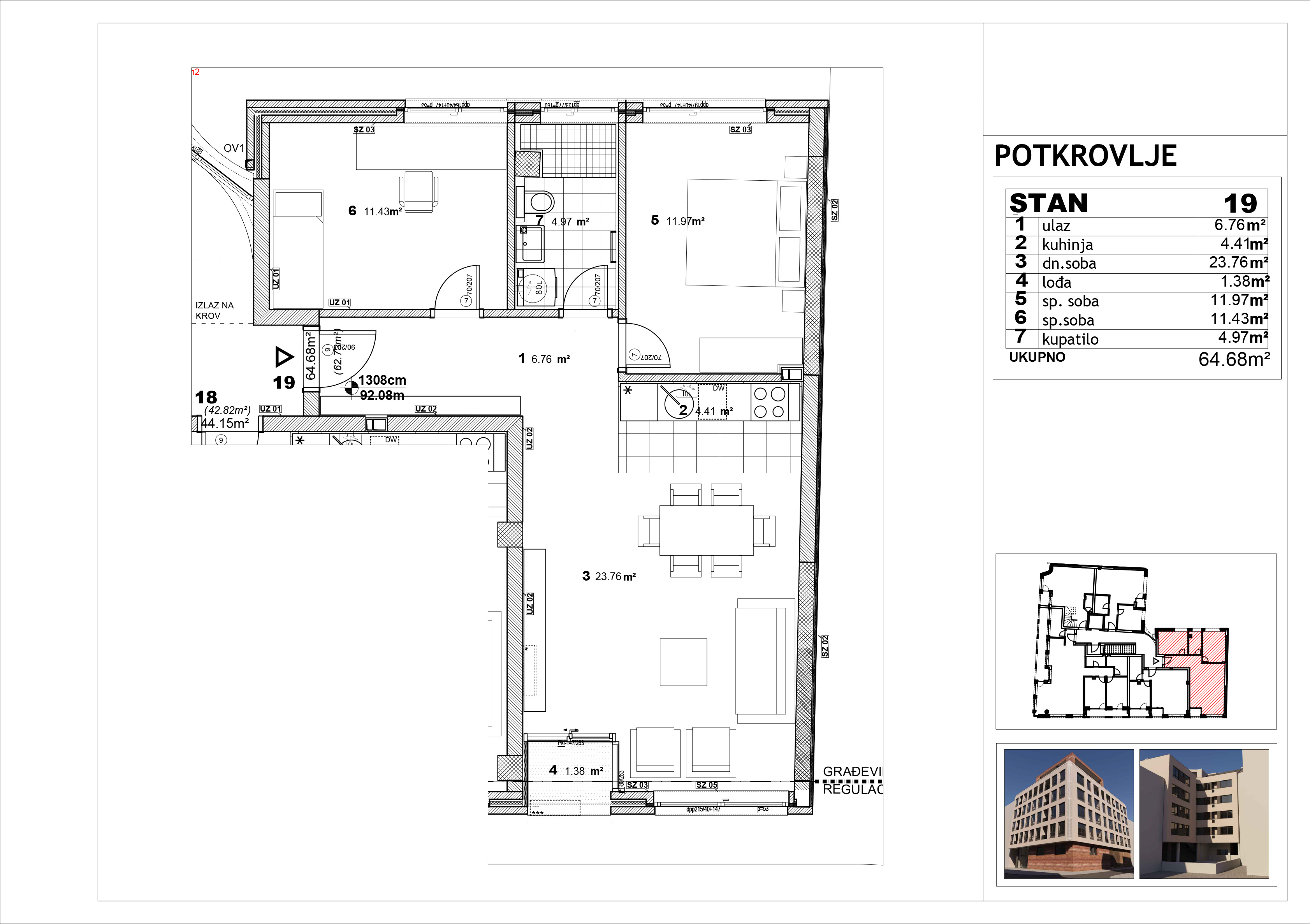 | Stan 20 | Potkrovlje | 43 m² | 1 | Dostupan | ||
