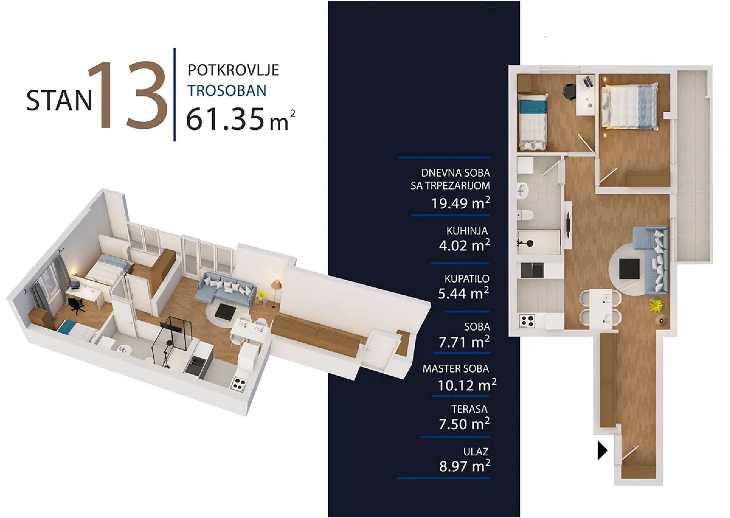 | Stan 13 | 3 | 61 m² | 2 | Dostupan | Plan stana | |