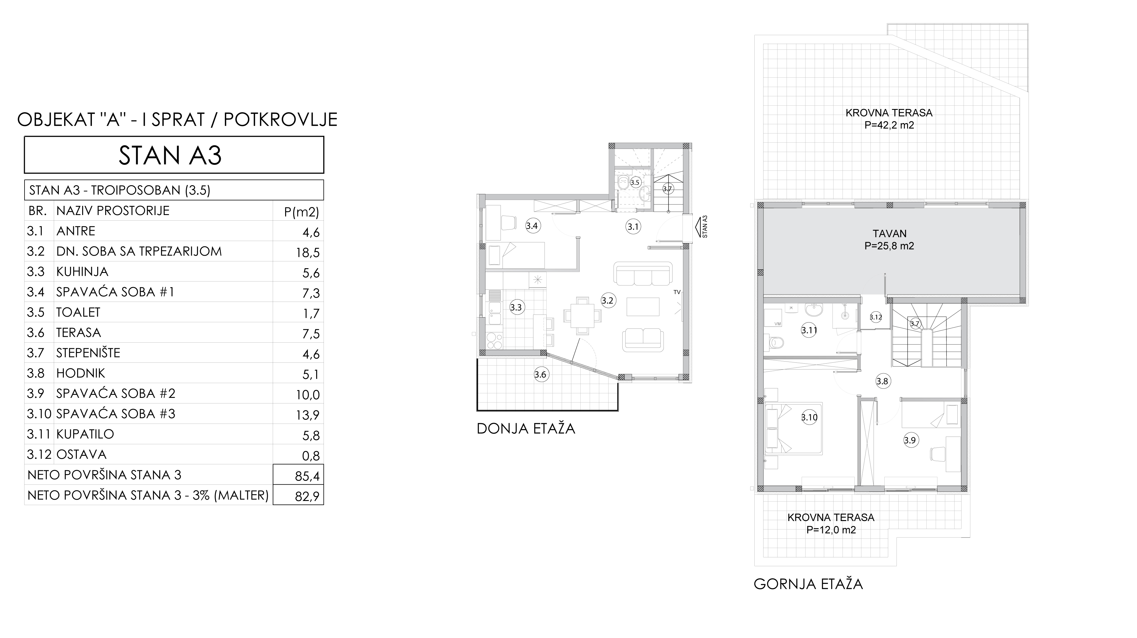 | Objekat A - Stan 3 | 1 | 83 m² | 3 | Dostupan | Plan stana | |