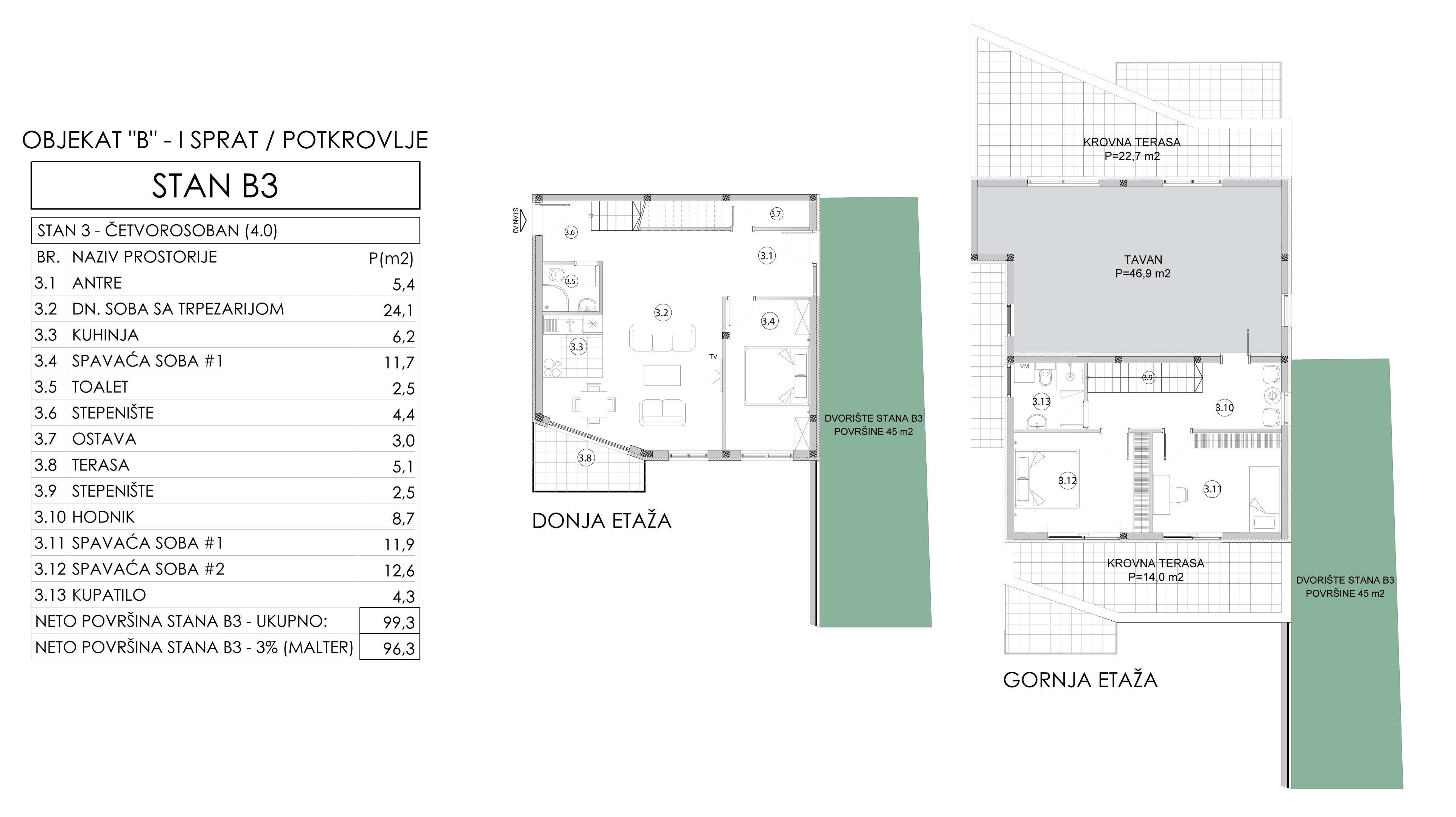| Objekat B - Stan 3 | 1 | 96 m² | 3 | Dostupan | Plan stana | |