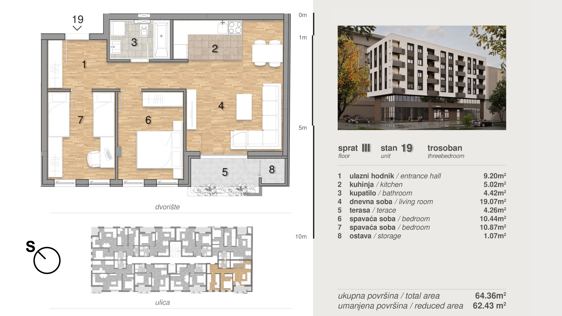 | Stan 19 | 3 | 64 m² | 2 | Dostupan | Plan stana | |