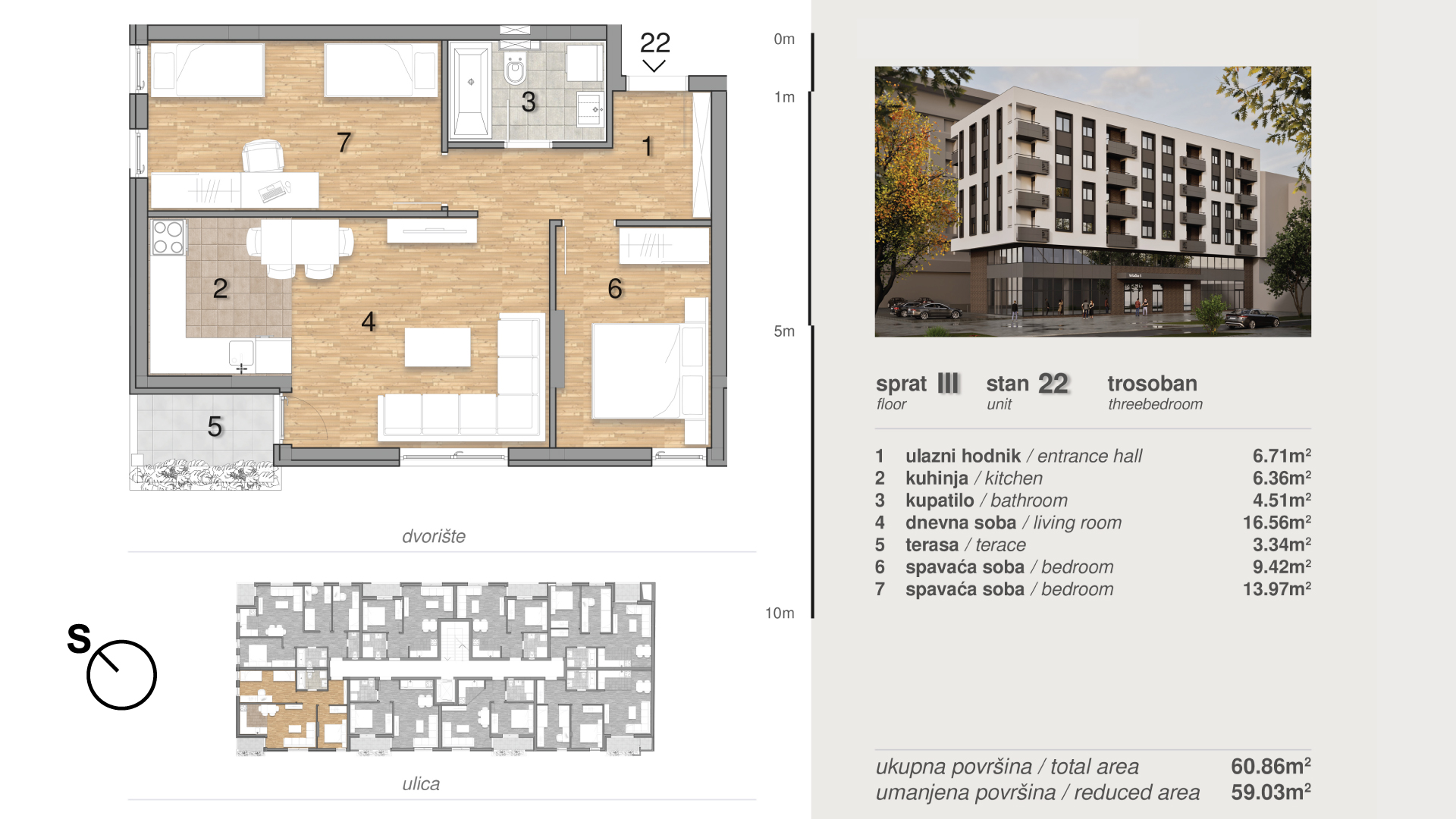 | Stan 22 | 3 | 61 m² | 2 | Dostupan | Plan stana | |