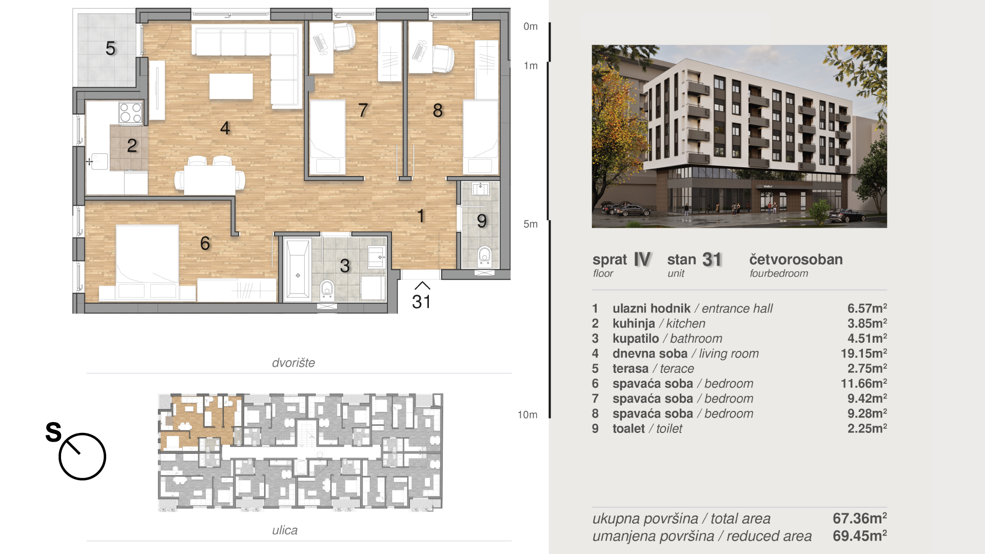 | Stan 31 | 4 | 69 m² | 3 | Dostupan | Plan stana | |