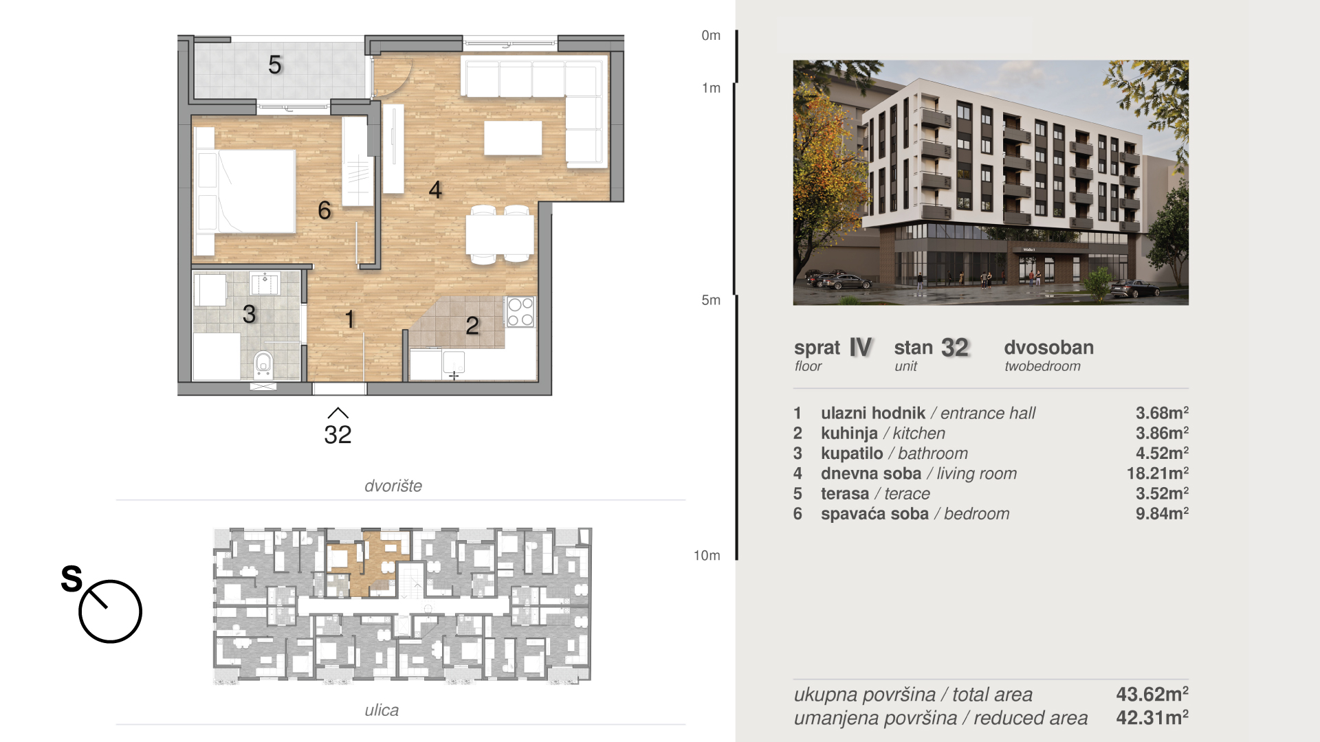 | Stan 32 | 4 | 44 m² | 1 | Dostupan | Plan stana |