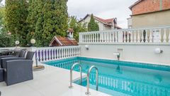 This luxurious property offers plenty of space and extraordinary comfort, designed for families in search of an exclusive living environment in the city. The interior is adorned with luxurious furniture that creates an unparalleled atmosphere of prestige. This monumental home features four spacious bedrooms and impressive lounges on two levels, with an additional floor in the lower ground level, which is a separate equipped living unit, as well as storage space and a garage. The backyard with a pool is the main attraction, while two terraces on the first floor provide additional outdoor space for enjoyment.