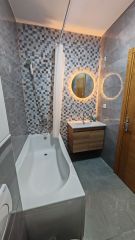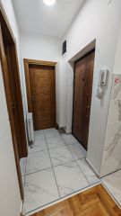 A modern and elegantly furnished 42 m² apartment is for sale in the Adice neighborhood of Novi Sad. It is located on the first floor of a smaller, newly built residential building (2024). The apartment is fully registered and ready to move in. The apartment is sold partially furnished: furniture, except for built-in elements and the kitchen, is not included in the price, but can be purchased separately, as well as additional non-built-in appliances. Free parking for residents is available around the building.